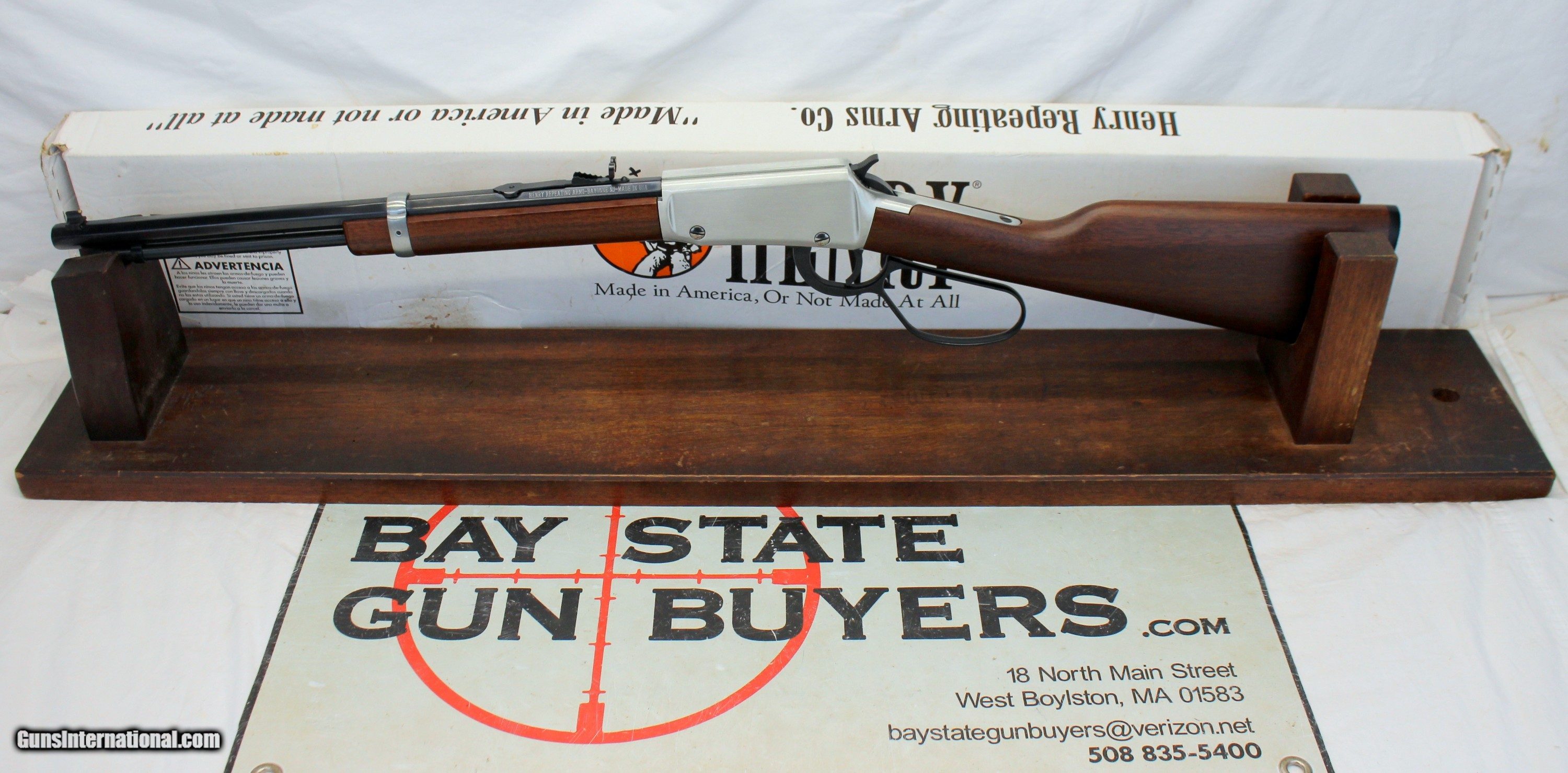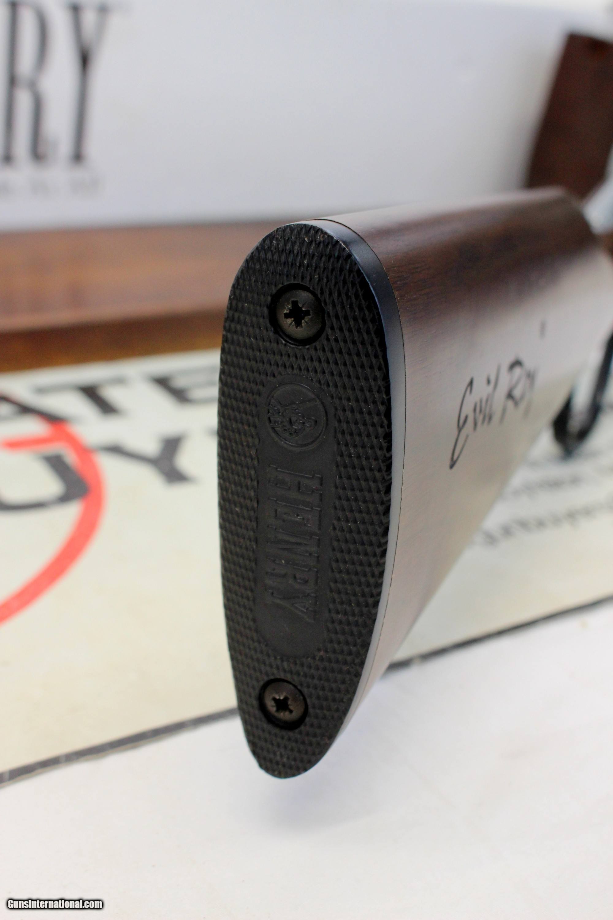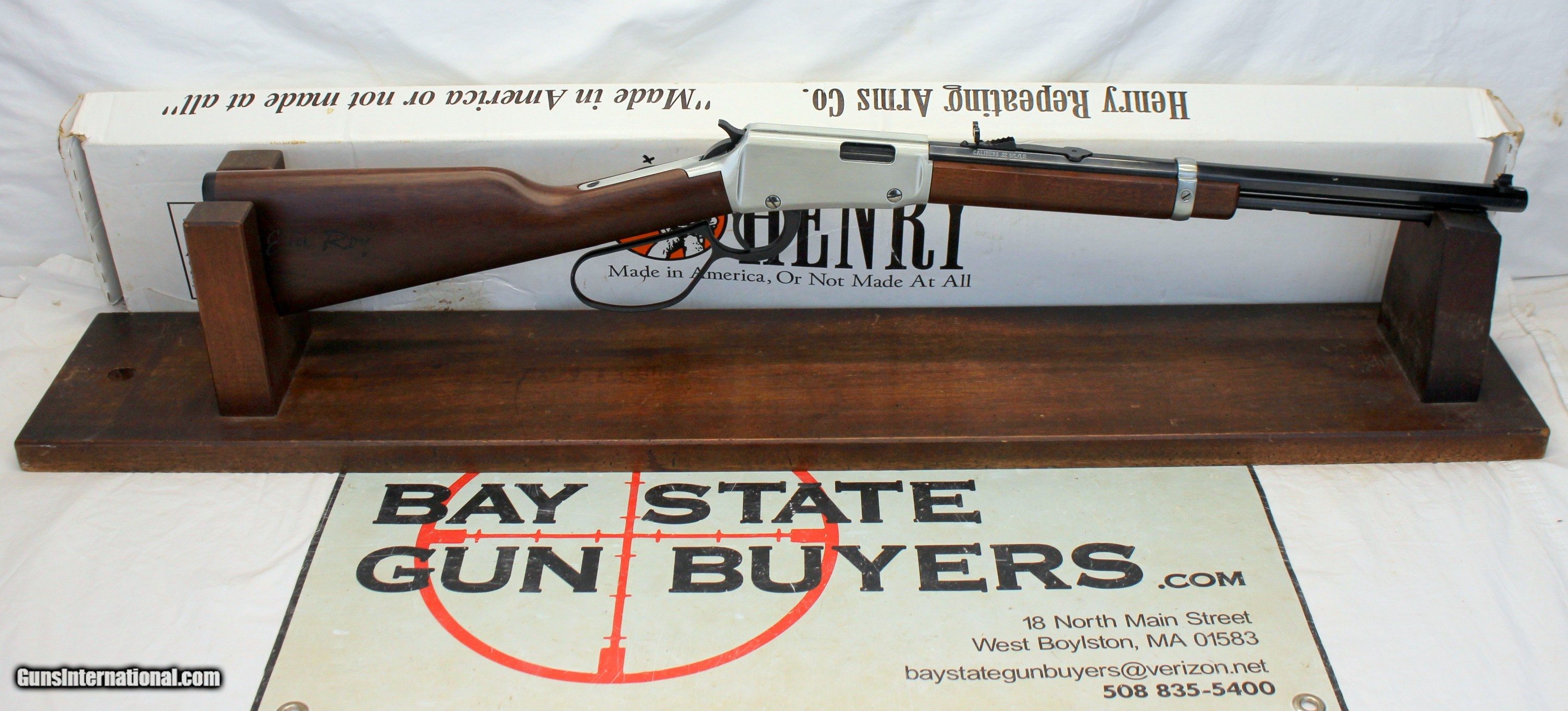 Description: We are offering for sale a Henry Repeating Arms EVIL ROY Model H001TER lever action rifle chambered in .22 S L LR calibers. This is a classic style LEVER ACTION rifle with a octagon barrel. This is a preowned example with light scattered handling wear. 17" octagon barrel is very good with light wear; A couple small spots of blue loss. The bore is bright with crisp rifling. The receiver is very good with a coupple light handling scratches. Lever action functions flawlessly. The original shoulder stock and forend are very good with minimal handling wear; "EVIL ROY" signature on right side of shoulder stock. Plastic buttplate with light wear. SCARCE HENRY RIFLE!! SHIPPING IS $34.95 USPS GROUND WITH INSURANCE **** PLEASE NOTE: WE ONLY ACCEPT MASTERCARD AND VISA AS PAYMENT OPTIONS (please note we charge a non-negotiable 3% CC fee) **** **** WE TAKE CREDIT CARD PAYMENT OVER THE PHONE. WE DO NOT TAKE PAYMENT THROUGH THIS **** PLEASE LOOK AT ALL PHOTOGRAPHS FOR CONDITION Please know the legality of any weapon in your state before . If a gun can’t be transferred to you we will charge a 15% re-stocking fee. We are in the shop MODAY, WEDNESDAY, THURSDAY, FRIDAY and SATURDAY 8am-4pm EST. We will be in touch within 24 hours of your purchase. Please be ready to provide CC information. Please have your FFL email a copy of their license to: . No Face To Face Transfers! Please note: Clicking "buy" does not guarantee that this gun is yours, However clicking “Buy” will reserve this gun for you, if it hasn’t been sold in store. We will try to do our best to remove the posts as efficiently as possible, but sometimes delays may ensue. “Buy” is your safest bet to reserve a gun. Also please add 6.25% MA state sales tax (if from MA) and 3% credit card shop courtesy fee for all out of state buyers Before calling with concerns read these conditions and meet them accordingly. SOLD |