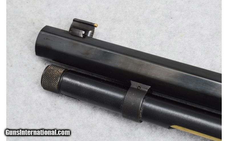 Description: SOLD Caliber Info: .357 Mag.. Metal Condition: Very good with blemishes. Wood Condition: Very good with handling marks. Bore Condition: Shiny with strong rifling. Barrels: 20 Stock: Smooth walnut. Fore End: Smooth walnut. Butt Pad: Smooth brass. Weight: 7-lbs., 4-ozs. Sights: Front bead, stepped rear blade. Item Location: Fort Worth, TX |