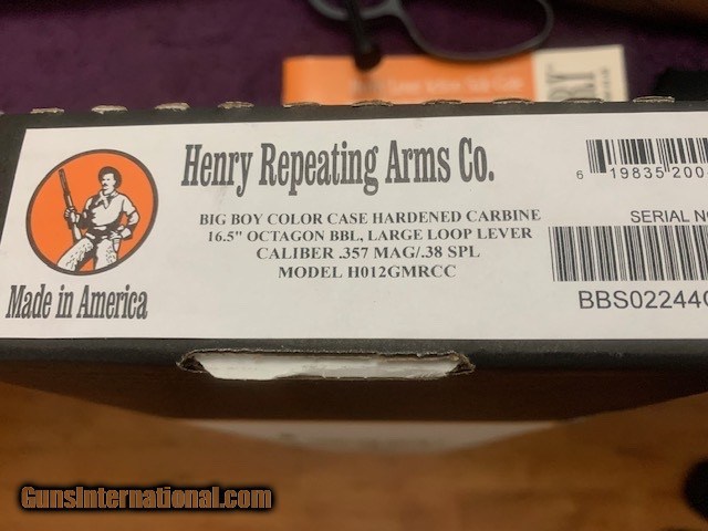 HENRY BIG BOY 357 MAG/38 SPC.., CASE HARDNED, CARBINE, 16 1/2” BARREL, NEW IN THE BOX