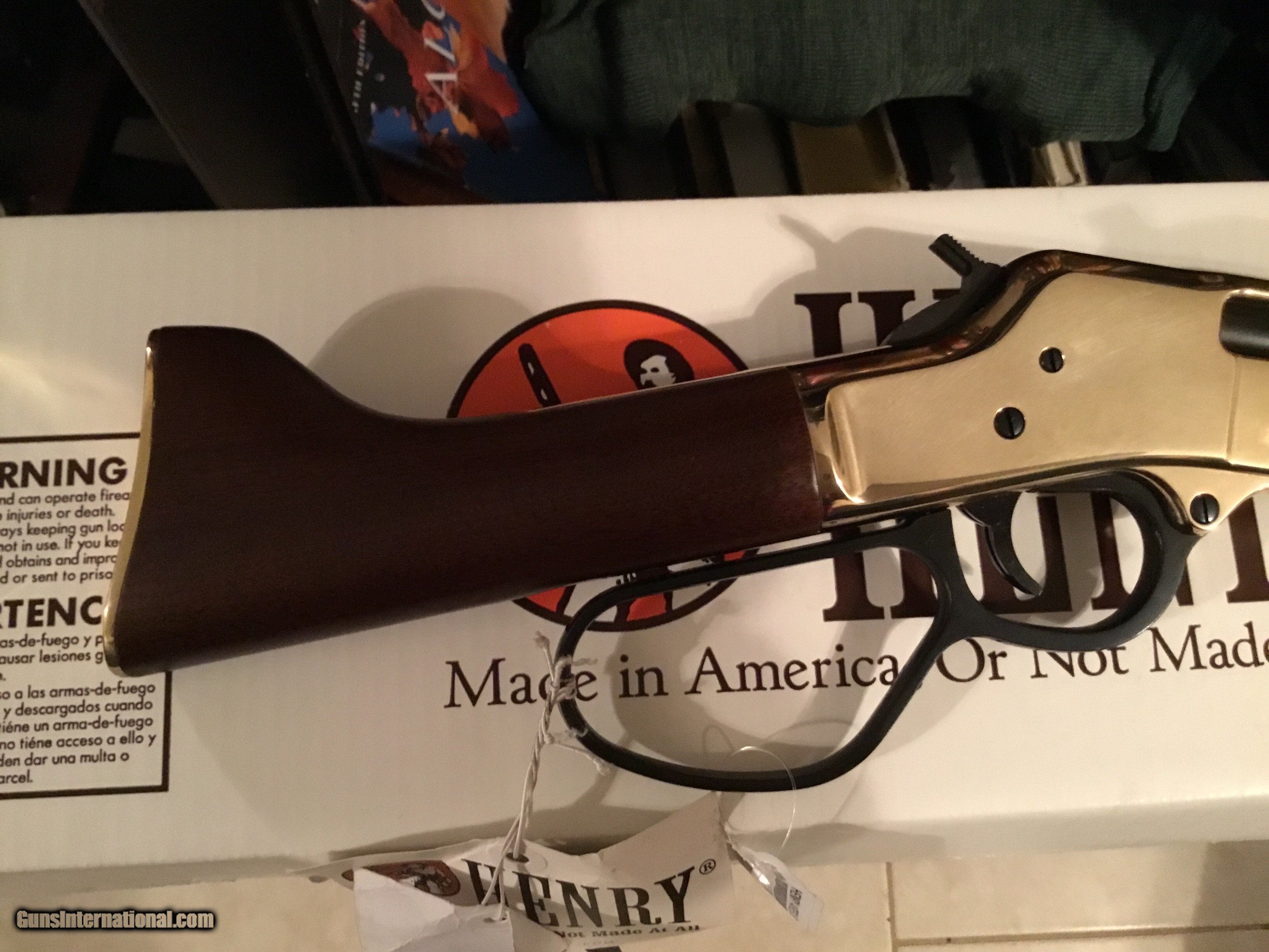 Description: NIB Henry Big Boy Mare's Lever Action 5 shot.Caliber-357 Mag/38 Spl.Barrel Lenght 12.904" Octagon.Capacity 5 rounds,Rate of twist-1:16,Overall Lenght-25",Weight-5.79 Lbs,Octagon Barrel.Rear Sight-Fully Adjustable Buckhorn W/Diamond Insert.Front Sight-Brass Bead.Scopeability-Drilled And Tapped For BB-RSM.Stock-American Walnut Pistol Grip.Buttplate-Brass.Safety-Transfer Bar.Brand Brand New Do not use Blazer or other Aluminum ammunition in this firearm.This is a lever action pistol. SOLD Handgun Caliber: .357 Magnum Manufacturer: Henry Model: Mare's Leg Barrel Length: 12.904 Condition: NIB Barrel Type: Octagon Action: Lever Stock: American Walnut Butt Pad: Brass Weight: 5.79 Lbs. |