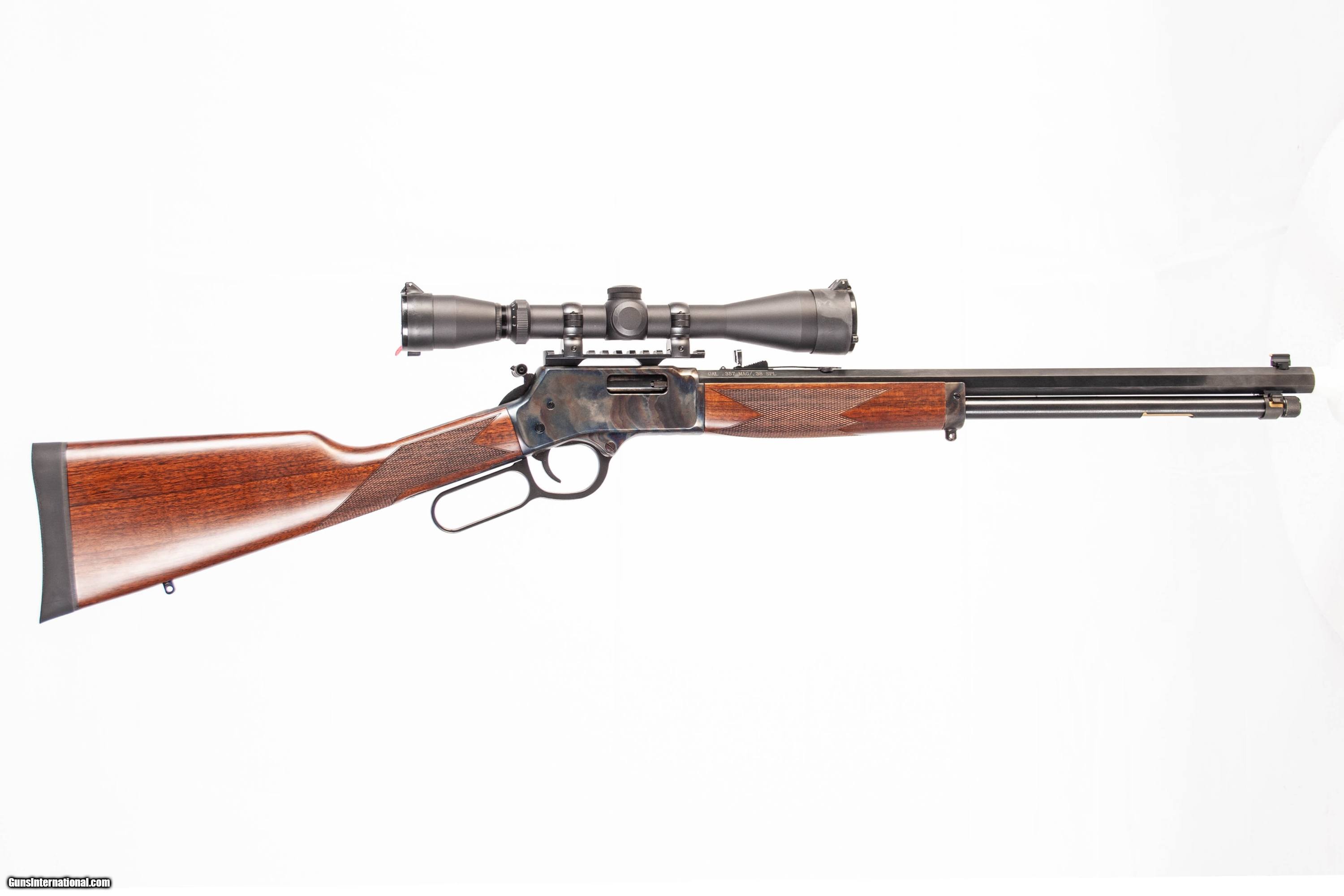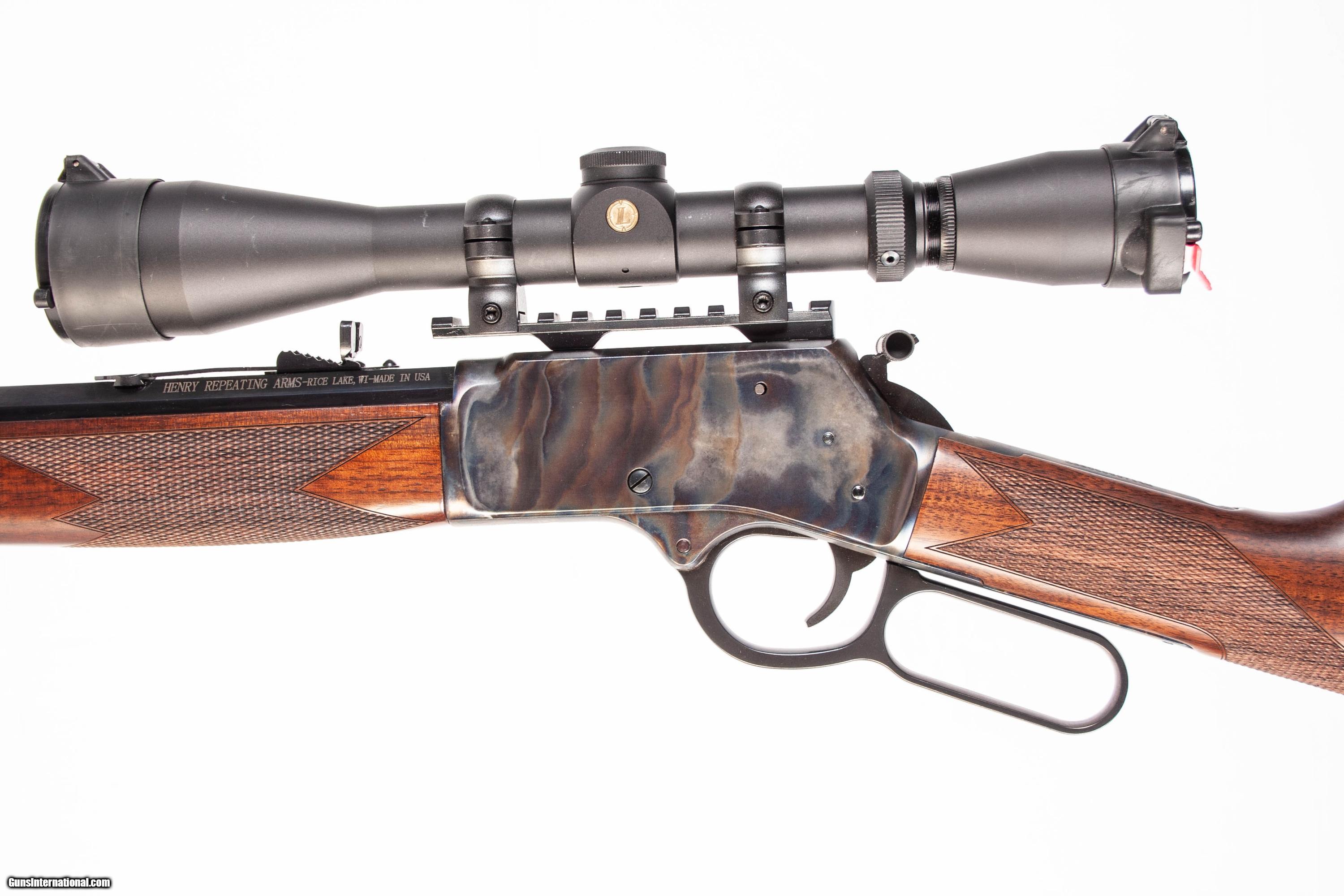Henry Repeating Arms Big Boy chambered in 357 Mag with a 20 inch octagonal barrel bright bore and good grooves with a color case hardened receiver and a Leupold VX-1 4-12x40 scope. This gun is in excellent condition and is covered by Dury's Lifetime Warranty.