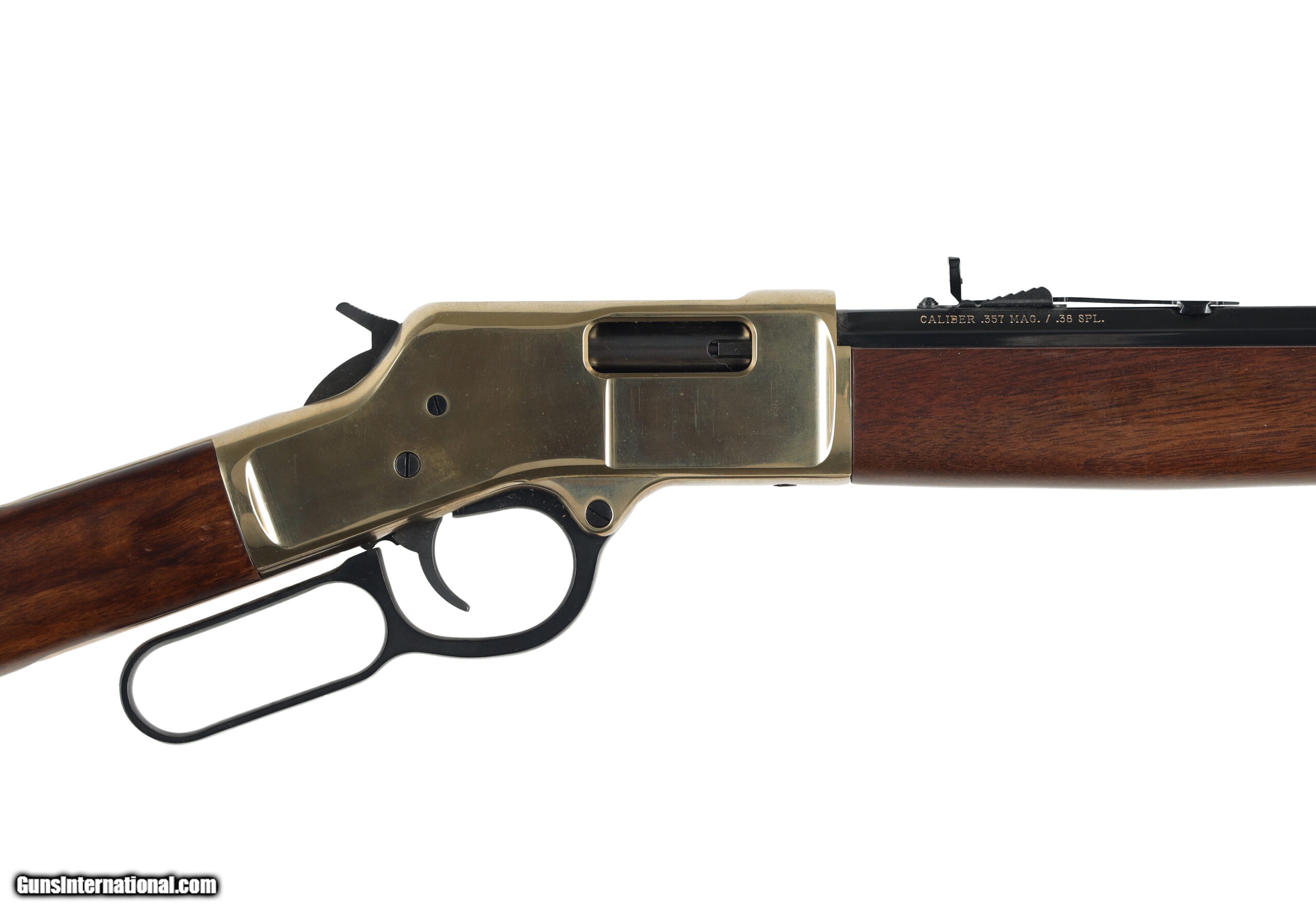 Description: This Henry Big Boy rifle, manufactured in Brooklyn New York, is in very good overall condition, with only very mild hazing on the brass receiver, and practically no wear on the barrel or stock. Manufactured in: USA Hand: Right Hand Action Finish: Polished Hardened Brass Metal Finish: Original Barrel Length: 20 Inches Barrel Condition: Very Good Stock Finish: Original Stock Condition: Very Good Type of Butt: Brass Plate Grip: Straight Grip Forend: Not Checkered SOLD Manufacturer: Henry Repeating Arms Model: Big Boy Caliber Info: .357 Magnum Condition: Preowned Metal Condition: Very Good Action: Lever Action Triggers: Single Fore End: Not Checkered LOP: 14 1/8 Finish: Original Weight: 8.2 lbs Case: NONE |