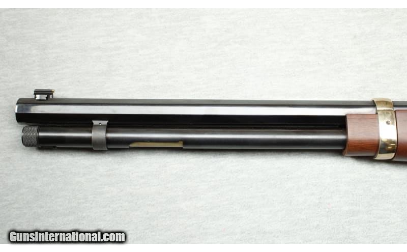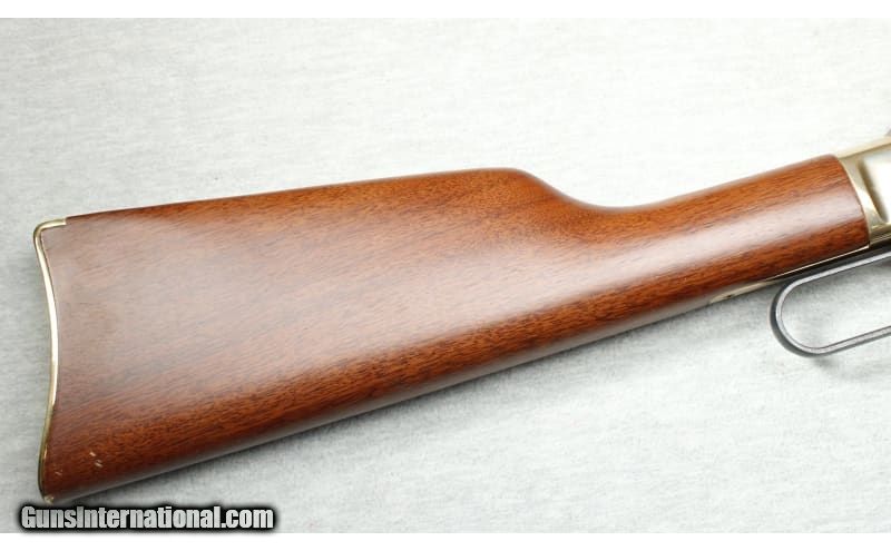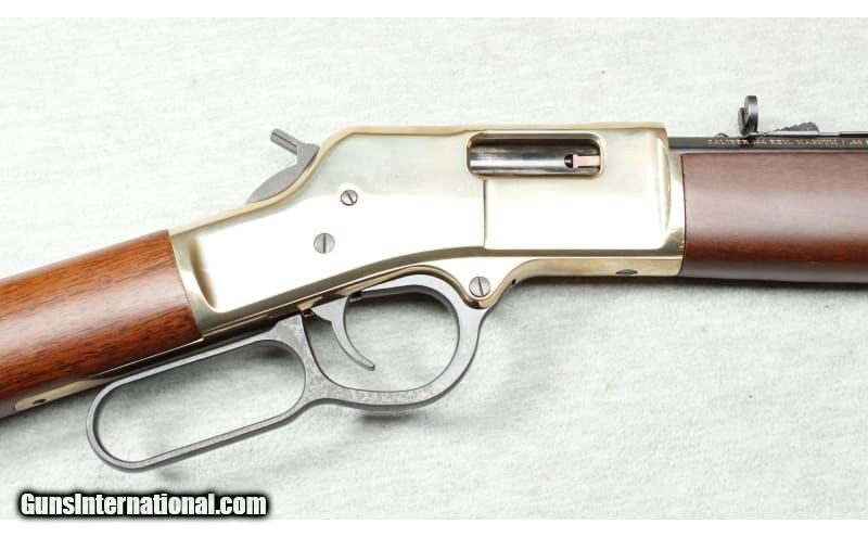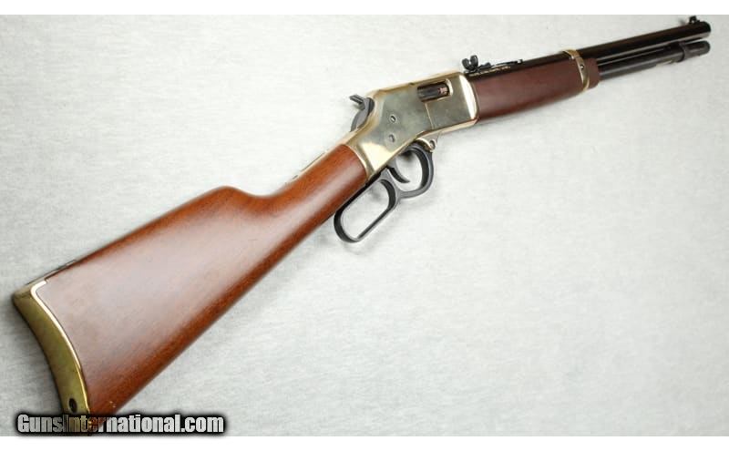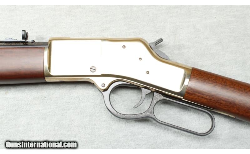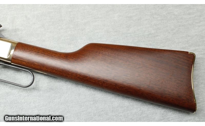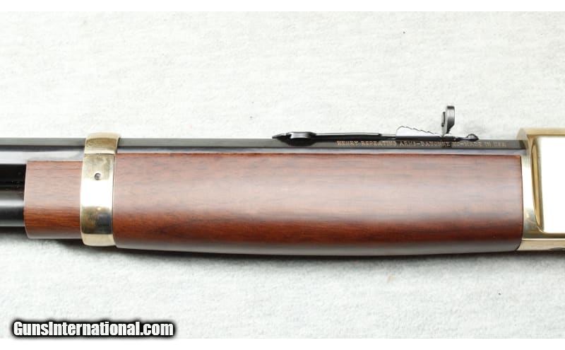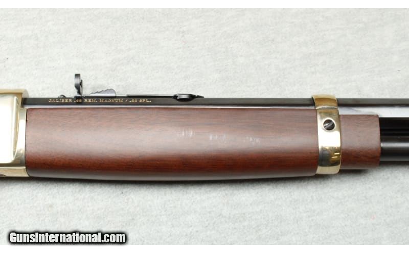 Description: Excellent condition, light wear, small nicks & sratches. Henry lever action rifle, polished blue metal, gold finish receiver, 20" octagon heavy barrel with full length mag tube, buckhorn rear & bead front sights, smooth wood forend and stock with factory curved metal butt plate. .44 Magnum SOLD Chambers: Lever action Metal Condition: Excellent Wood Condition: Excellent Bore Condition: Bright Barrels: 20 Triggers: Factory Stock Dimensions: 14" LOP Fore End: Smooth Butt Pad: Curved metal butt plate Sights: "Buckhorn rear, bead front sights Item Location: La Vista, NE |