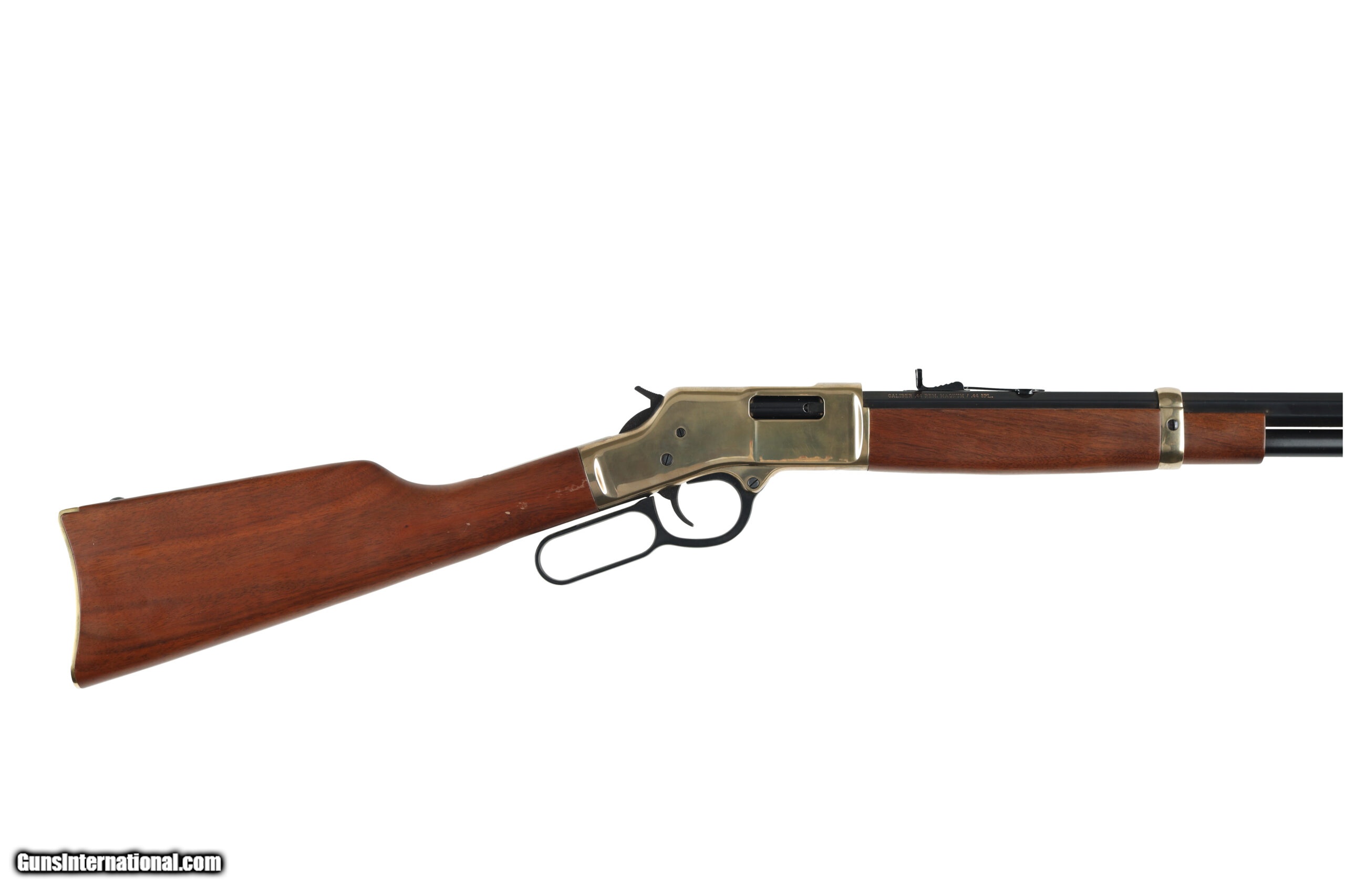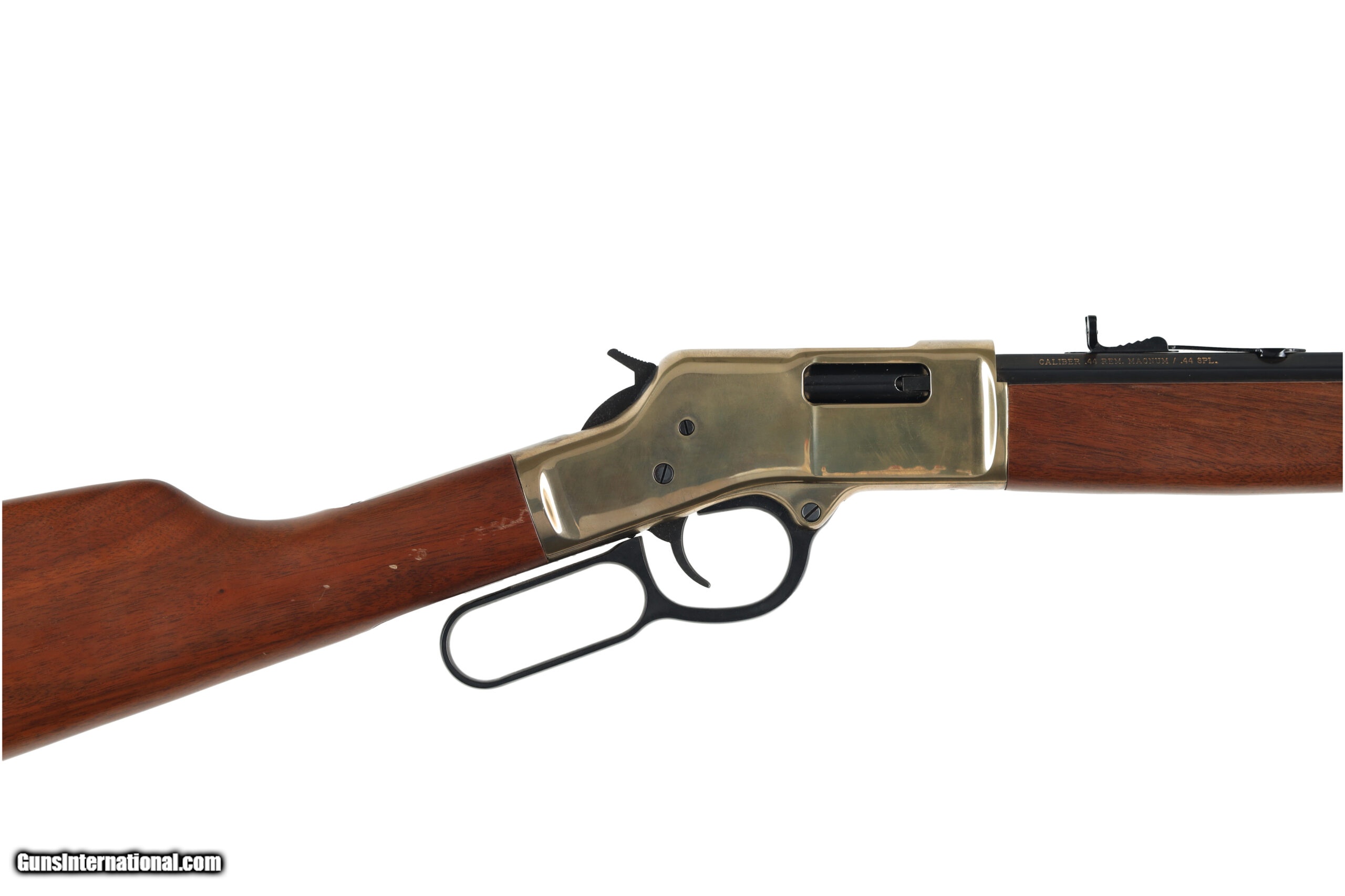 Description: This Henry Big Boy rifle, manufactured in Brooklyn New York, is in good overall condition, with only very mild hazing on the brass receiver, and only superficial spots of corrosion on the barrel, with practically no wear on the stock. Manufactured in: USA Hand: Right Hand Action Finish: Polished Hardened Brass Metal Finish: Original Barrel Length: 20 Inches Barrel Condition: Good Stock Finish: Original Stock Condition: Very Good Type of Butt: Brass Plate Grip: Straight Grip Forend: Not Checkered SOLD Manufacturer: Henry Repeating Arms Model: Big Boy Caliber Info: .44 Remington Magnum Condition: Preowned Metal Condition: Good Action: Lever Action Triggers: Single Fore End: Not Checkered LOP: 14 3/8 Finish: Original Weight: 7.6 lbs Case: NONE |