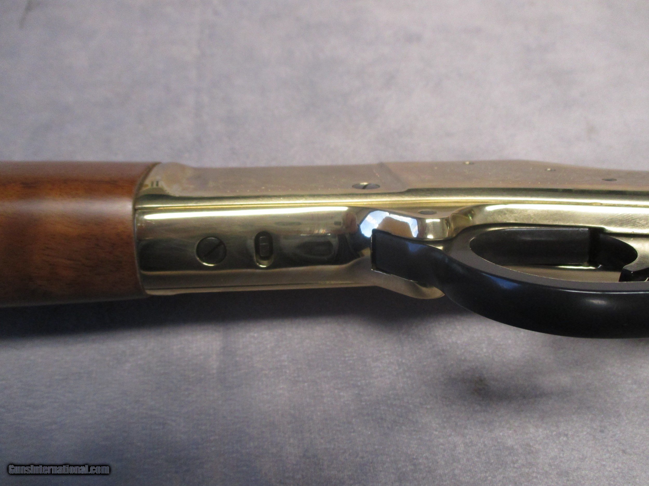 Description: “Made in America, or not made at all.” That’s Henry Repeating Firearms’ advertising slogan, and the high quality of their firearms illustrates this. The Big Boy Deluxe represents a top-of-its-class example of the iconic pistol-caliber lever rifle. It is built to be a heirloom passed down from one generation to another. Only 1000 of the 4th Edition rifles have been built. Judging from the serial number, this rifle is # 136. The Big Boy Deluxe features a brass receiver, butt plate, and barrel band. The receiver and barrel band feature extensive engraving, being adorned with the traditional flowing-leaf scrollwork found on many high end rifles built in the late 19th and early 20th centuries. The stock and fore end are made of walnut rather than the usual hardwood. The rifle weighs around 8.7 lbs. which is about the normal weight for a lever action rifle. The 44 Magnum caliber is an excellent choice for use against most animals found in the woods out to 100-150 yards. It is a blast to shoot out of a rifle and easier to handle in this form than from a revolver. The .44 S&W Special can also be used in this rifle. The octagonal barrel is 20 inches in length, a standard for “carbine” lever guns. Sights are the classic buckhorn elevator rear and bead front sight. The receiver is drilled and tapped and will work with Henry’s BB-RSM scope mount. Magazine capacity is 10 rounds. This rifle is new in box. SOLD Rifle Caliber: .44 Magnum Manufacturer: Henry Repeating Arms Model: H006D4 Serial Number: BB0136D4 Bore: Rifled, 1:20" twist Condition: New in Box Barrel Type: Octagonal Action: Lever action Triggers: Single Stock: Walnut, straight grip Fore End: Walnut Butt Pad: Brass LOP: 14.0 inches (356 mm) Finish: Brass, Blued Weight: 8.7 lbs. Sights: Fully Adj. Semi-Buckhorn Rear w/Diamond Insert, Brass bead front, sight radius 16.625 inches (422.275 mm) Engraving: Receiver and Barrel Band, Traditional flowing leafy scrollwork Case: Henry Box |