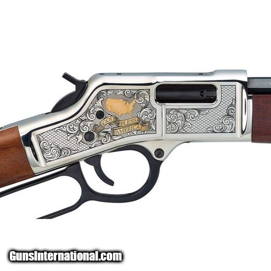 Description: Guns Listing ID: 243331 The second in Henry‚‚s Patriotic Series is a hard-hitting .44 Magnum Big Boy that splits the difference between a beautiful display rifle and a hard-working hunting gun. This big-bore God Bless America centerfire lever action is a fine example of the gunmaker‚‚s craft and the engraver‚‚s art, and it‚‚s meant to be every bit as much of a stand-out on the range as it is to be a dependable game-getter in the woods. This rifle features a blued 20\" octagon barrel, standard adjustable buck and bead sights, unobtrusive transfer bar safety, and fancy American walnut furniture. The receiver has engraving on both sides that forms an accented background for a 24K gold \"God Bless America\" banner. On the left, the Liberty Bell that shows in raised gold relief right next to another \"God Bless America\" gold banner. In a painted mural on the stock‚‚s right rear side, 8 Americans from all walks of life stand in silhouette contemplating the proudly waving Stars and Stripes, above a gold banner bearing the opening words to the national anthem, \"O Say Can You S SOLD Manufacturer: HENRY Model: BIG BOY GOD BLESS AMERICA EDITION Caliber Info: 44 REM MAG Condition: new Barrels: 20" BARREL Finish: AMERICAN WALNUT |