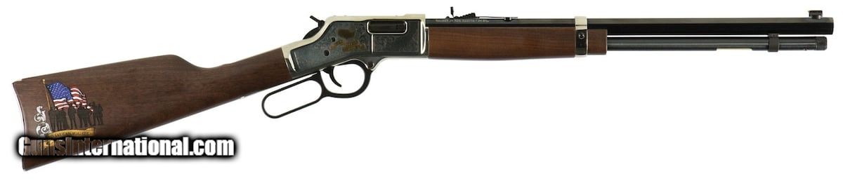 Description: Guns Listing ID: 448006 The second in Henry‚‚s Patriotic Series is a hard-hitting .44 Magnum Big Boy that splits the difference between a beautiful display rifle and a hard-working hunting gun. This big-bore God Bless America centerfire lever action is a fine example of the gunmaker‚‚s craft and the engraver‚‚s art, and it‚‚s meant to be every bit as much of a stand-out on the range as it is to be a dependable game-getter in the woods. This rifle features a blued 20\" octagon barrel, standard adjustable buck and bead sights, unobtrusive transfer bar safety, and fancy American walnut furniture. The receiver has engraving on both sides that forms an accented background for a 24K gold \"God Bless America\" banner. On the left, the Liberty Bell that shows in raised gold relief right next to another \"God Bless America\" gold banner. In a painted mural on the stock‚‚s right rear side, 8 Americans from all walks of life stand in silhouette contemplating the proudly waving Stars and Stripes, above a gold banner bearing the opening words to the national anthem, \"O Say Can You S SOLD Manufacturer: HENRY Model: BIG BOY GOD BLESS AMERICA EDITION Caliber Info: .44 MAGNUM Condition: new Barrels: 20" BARREL Finish: AMERICAN WALNUT |