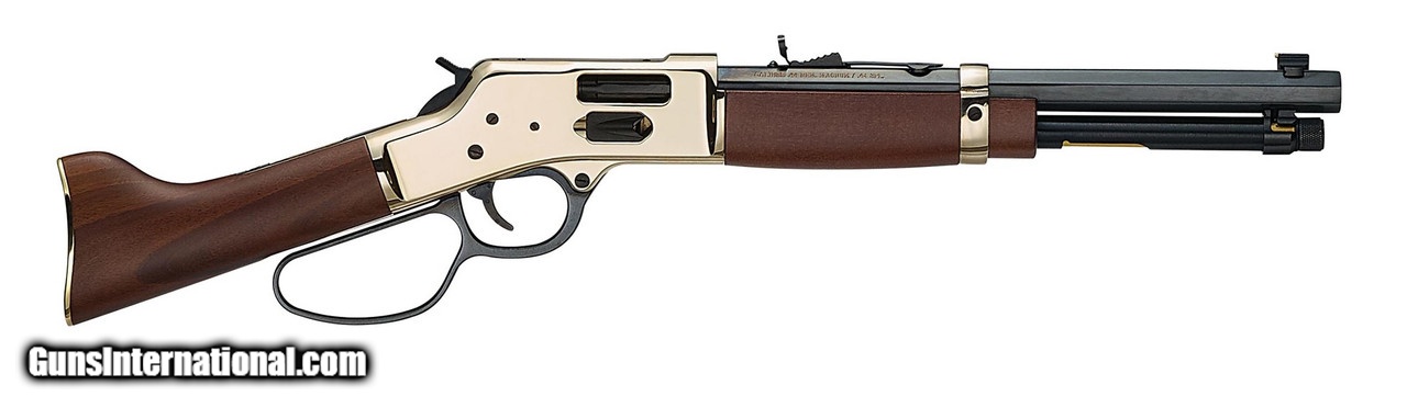 Description: Manufacturer: Henry Repeating Arms Model: Big Boy Mare's Leg Side Gate Pistol SKU: H006GMML Action: Lever-Action Pistol Large Loop Caliber: .357 Magnum / .38 Special Capacity: 5 Rounds Barrel Length: 12.9" Octagon, Blued Steel Receiver: Polished Hardened Brass Overall Length: 25" Stock: American Walnut with Brass Buttplate Rate of Twist: 1:16" Sights: Adjustable Semi-Buckhorn - Rear, Brass Bead - Front Weight: 5.79 lbs All items are factory new in box unless otherwise stated. Based on the information available to us, the above specifications describe this item to the best of our knowledge. For further information, please contact or visit the manufacturer's . SOLD |
