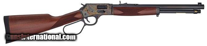 Description: NEW IN STOCK Henry Big Boy Color Case Hardened, Lever Action, Side Gate, 357 Mag, .38 Special, 16.5" Octagon Blued Steel Barrel, Straight-grip American Walnut Stock, Fully Adjustable Semi-Buckhorn Sights, 7Rd, Large Loop H012GMRCC