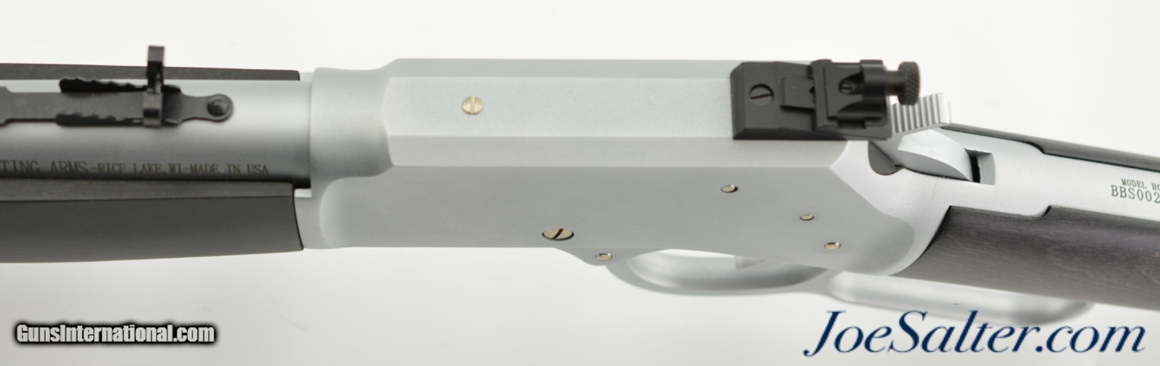 Description: Serial #BBS00218AW, .44 Mag/Spl, 20 inch barrel with an excellent bore. This is the Henry Big Boy Steel all weather (Model H012AW). In excellent condition the rifle retains virtually all, 98-99% of the original matte stainless finish. The dark gray laminate stocks rate excellent with virtually no sign of use. It is equipped with the standard adjustable rear sporting and front sights along with a Williams peep sight. This is the early model without the side loading gate. It comes in the original cardboard box numbered to the gun with manual and paperwork. FFL SOLD |