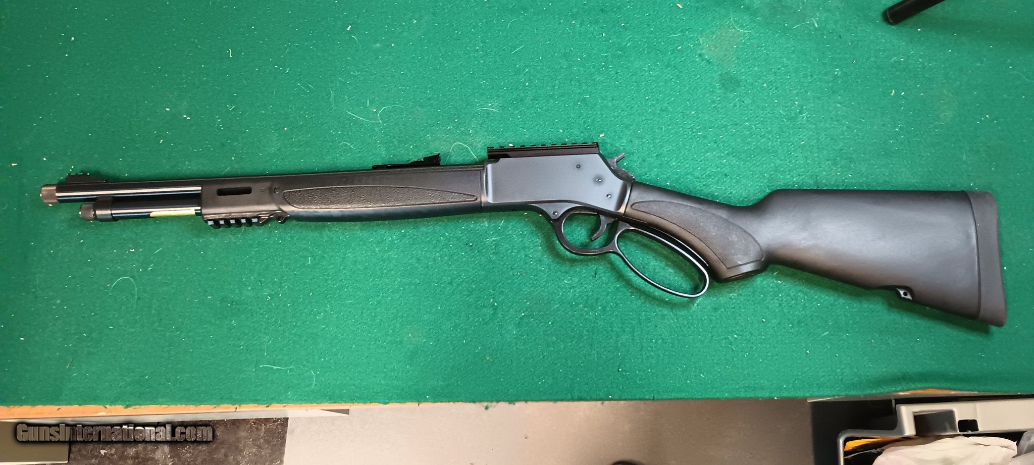 Description: Guns Listing ID: 1207742 The Big Boy X-Model is packed with a high-performance feature set and plenty of room to add even more. The durable synthetic furniture is equipped with integrated mounting points for a sling, a solid rubber recoil pad, and both Picatinny and M-Lok accessory slots to aid in mounting the tools you need for the task at hand. The carbine-length barrel is topped off with highly visible fiber optic sights, fore and after, and the muzzle end is threaded (5/824 thread pitch) to accept a suppressor or other muzzle device. A screw-on thread protector ensures your muzzle threads stay in top shape. Keeping true to our roots the Big Boy X Model utilizes a 7-round removable tube magazine for convenient unloading, and the addition of a side loading gate allows that magazine to be kept topped off without needing to remove the tube or suppressor. Whether its geared up to be your bedside protector, truck gun, deer rifle, or Saturday range day show-off piece, the Big Boy X Model is one rifle capable of many different roles. Brand Henry Category Rifles Caliber 44 Rem Mag Model Big Boy Series X Model Stock Finish Black Action Lever Barrel Length Range 17\" to 17.99\" Sights Fiber Optic Front, Adjustable Rear Capacity 7+1 Muzzle Threaded Hand Right Length of Pull 14\" OAL 36.30\" Receiver Finish Blued Receiver Material Steel Safety Transfer Bar Stock Finish Group Black Stock Material Synthetic Thread Pattern 5 / 8\"-24 tpi Twist 1:20\" Weight 7.30 lbs Barrel Description Round Barrel Finish Blued Barrel Length 17.40\ SOLD Manufacturer: HENRY Model: BIG BOY X Caliber Info: .44 MAGNUM Condition: Used - Non-Certified Barrels: 17.4 BARREL |