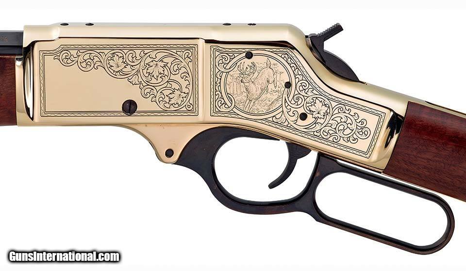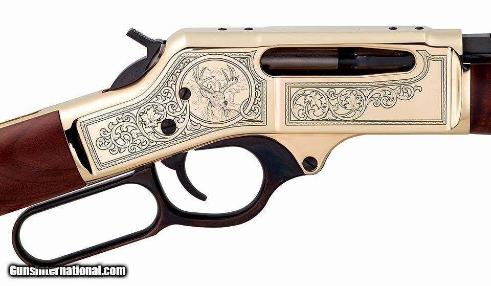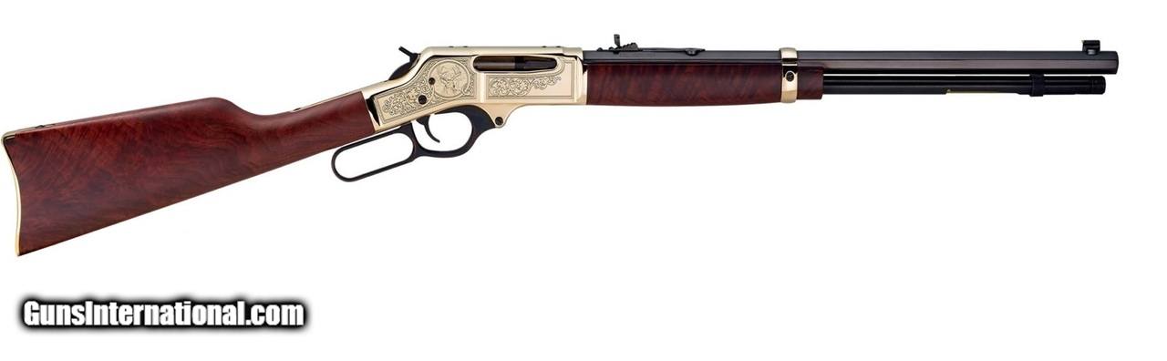 Description: Manufacturer: Henry Repeating Arms Co. Model: Brass Wildlife Edition SKU: H009BWL Caliber: .30-30 Win Capacity: 5 Rounds Barrel Length: 20" Octagon Blued Steel Overall Length: 39" Receiver: Engraved Polished Brass Weight: 8.30 lbs Twist: 1:12" Stock: American Walnut, Brass Buttplate Length of Pull: 14" Sights: Fully Adjustable Semi-Buckhorn w/Diamond Insert - Rear, Brass Bead - Front All items are factory new in box unless otherwise stated. Based on the information available to us, the above specifications describe this item to the best of our knowledge. For further information, please contact or visit the manufacturer's . SOLD |