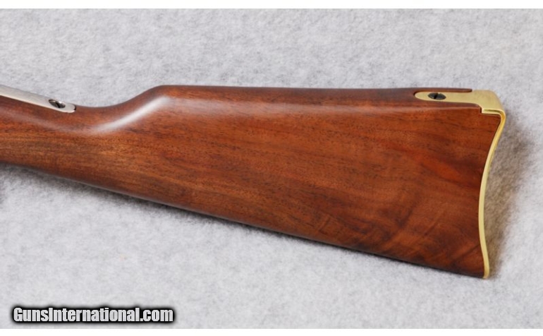 Description: SOLD Caliber Info: .22 short, long, long rifle. Wood Condition: New. Bore Condition: New. Barrels: 20" octagon barrel with a gold barrel band. Triggers: Black, serrated trigger. Stock: Dark straight grain wood with a satin finish and a fire truck on the stock. Stock Dimensions: LOP: 14". Fore End: Matching wood fore end with a gold barrel band. Butt Pad: Gold, steel shotgun butt. Weight: 6 lbs. 12 oz. Sights: Blade front with a brass dot and adjustable Rocky Mountain rear with a white diamond. Extras: Comes with the original box. Item Location: Kansas City, KS |