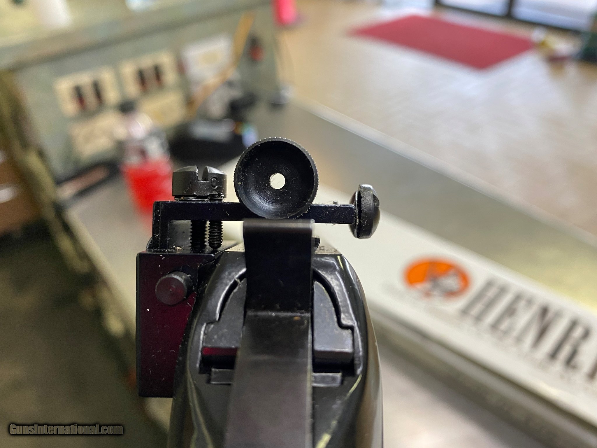 Description: Guns Listing ID: 567190 Comes with a Lyman 66 Receiver \"Peep\" Sight, Original box, it‚‚s in Great condition. No noticeable wear in the chamber or on the stock SOLD Manufacturer: HENRY Model: FRONTIER LONG BARREL Caliber Info: .22 WMR Condition: Used - Non-Certified Barrels: 24 barrel Finish: BLUED |