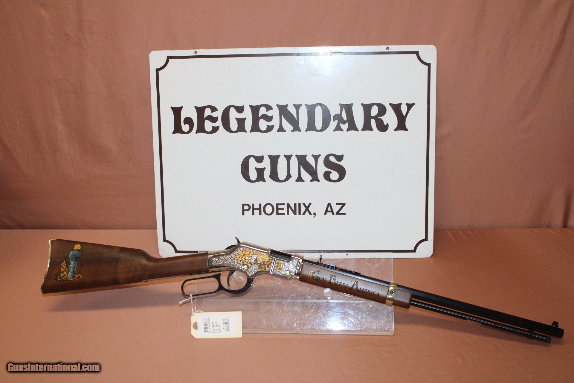 Description: Henry H004GBA God Bless America Edition in 22 S-L-LR with 20" octagon barrel, Nickel plated receiver, walnut stocks. Rifle is brand new with box. *Legendary Guns in Phoenix AZ 602-242-1195 Hours of operation Tuesday-Friday 10-6 Sat 10-5 Closed Sundays & Mondays *We accept all Major credit cards. We DO NOT charge an additional fee for Credit Cards. We also accept Postal Money orders or Certified Bank Checks{Check & Money order payments must arrive within 7 days of initial agreement and will be held for 3 days before items are shipped} *Shipping is $50 for rifles/shotguns {AK & HI Extra} and $35 for handguns. Arizona Residents Must Pay Sales Tax. We DO NOT ship Internationally. *We offer a 60 day layaway on purchases of $500 or more. Items require 1/3 of the total price as down payment which is NON-REFUNDABLE and you have 60 days to pay off the balance. *Please call or email with any questions and to confirm availability before buying. We are happy to answer all questions. All items listed are also for sale at our Phoenix, AZ location *We offer a 3 day inspection period on USED FIREARMS ONLY, We accept returns within the 3 day inspection period with NO REFUNDS ON SHIPPING CHARGES and a 10% restocking fee. *Trades are welcome for customers who can visit our Phoenix, AZ location, We DO NOT engage in online or mail in trades. SOLD Rifle Caliber: .22 Long Rifle Manufacturer: Henry Condition: New |