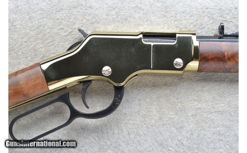 Description: This Henry Model Golden Boy is a right hand lever action repeating rifle in .22 Short, Long or Long Rifle Cal. It has a 20 inch octagon barrel. A blade front sight with a brass bead and an adjustable notch middle sight. The butt stock is a smooth grip walnut straight grip with a brasslite butt plate. The forearm is a smooth grip walnut with a brasslite barrel band. The receiver, top and bottom tangs are also brasslite. The right side butt stock has a colorful outdoor wild turkey scene with Meleagris Gallopavo Osceola (Osceola Wild Turkey). .22 Short/Long/Long Rifle SOLD Chambers: Lever Action tube magazine. Metal Condition: Excellent. The lever has some freckling. Wood Condition: Excellent. Bore Condition: Excellent. Barrels: 20 inch octagon. Triggers: Grooved. Stock Dimensions: 14 inches. Fore End: Smooth grip walnut with a brasslite barrel band. Butt Pad: Smooth curved brasslite. Weight: 6 lb. 14 oz. Sights: Blade front with a brass bead. Item Location: Richfield, WI |