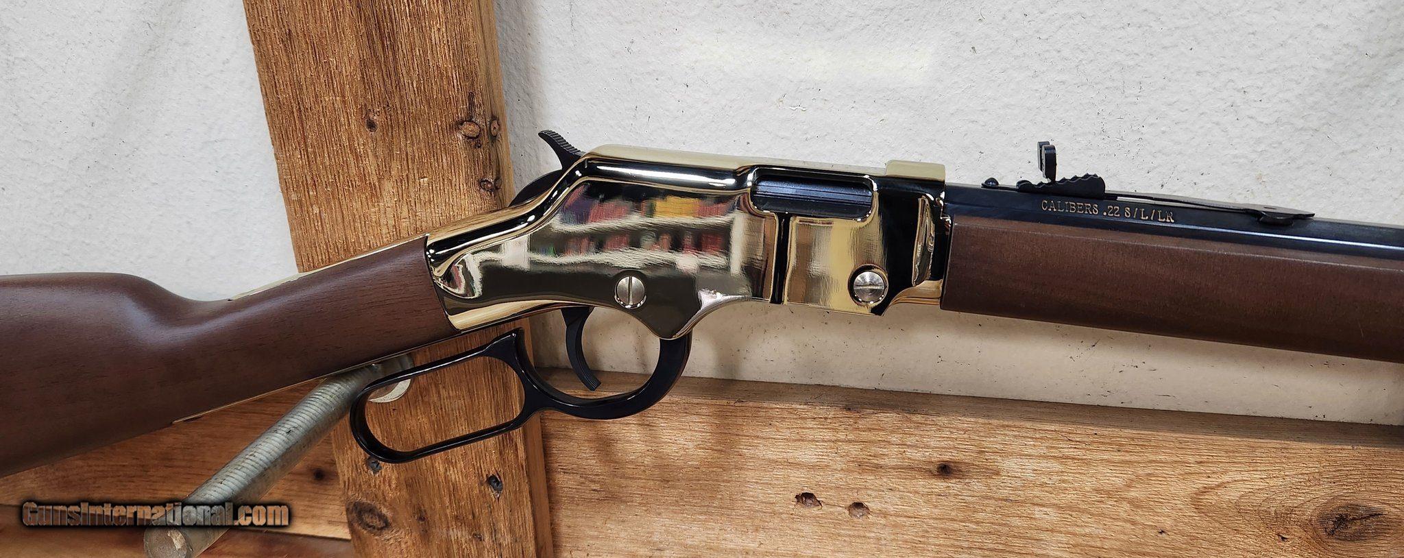 Description: Guns Listing ID: 1377892 In nice condition overall with the exception of a patch of pitting on the barrel (see pictures) and some minor handling marks. Otherwise the rest of the gun looks great. It does not have the original box. SOLD Manufacturer: HENRY Model: GOLDEN BOY Caliber Info: .22 S/L/LR Condition: Used - Non-Certified Barrels: 20 BARREL Finish: BRASS |