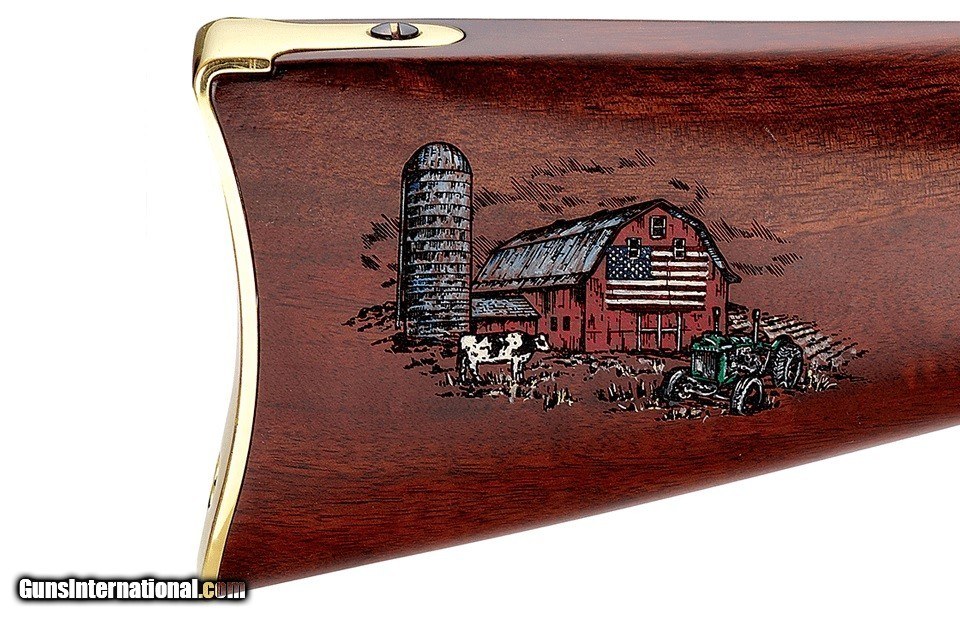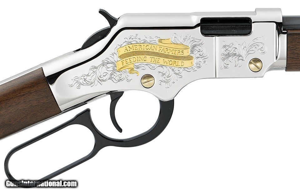 Description: BRAND NEW IN THE BOX AND READY TO SHIP! BUY IT NOW!! Manufacturer: Henry Repeating Arms Co. Model: Golden Boy - American Farmer Tribute Edition SKU: H004AF Caliber: .22 S/L/LR Capacity: 16 Rounds - LR, 21 Rounds - S Barrel Length: 20" Octagon, Blued Steel Receiver: Nickel Plated - Etched Twist Rate: 1:16" Overall Length: 38.5" Weight: 6 lbs Stock: American Walnut - Carved, Brass Buttplate and Pad Length of Pull: 14" Sights: Adjustable Semi-Buckhorn w/Diamond Insert - Rear, Brass Bead - Front They stand at the head of a line extending back a hundred generations; men, women and families who have coaxed the bounty of the earth from the rocky soil of New England, the vast fertile prairies of the west, the lush green valleys of central California, and every corner of the continent from sea to shining sea. Whether they labor with sweat and muscle or work with modern computerized machinery and advanced degrees, the essence of their lives remains as it’s been since our ancestors ceased searching for food and settled the land. They rise in the darkness before dawn, toil ceaselessly through the hours of light, and seldom finish until long after nightfall. Season after season they endure, strumming the rhythms of the natural world to bringing forth the harvest. We salute the American Farmer with this tribute edition featuring detailed scenes of farming life etched into the receiver and splashed with gold, with additional images lovingly carved into the American Walnut stock. It’s a .22 caliber work of art to carry, use and display with pride, carrying our message of heartfelt gratitude to a hundred generations, past and present, who feed our world. KNOW YOUR LOCAL AND STATE LAWS!! ORDERS WILL ONLY BE ACCEPTED FROM US RESIDENTS OF THE LOWER 48 STATES, ALASKA AND HAWAII. OUR FFL CLASS DOES NOT ALLOW FOR THE EXPORT OF FIREARMS, THEREFORE WE CANNOT SHIP OUT OF THE US. IF YOU ARE INTERESTED IN PURCHASING THIS ITEM, PLEASE COMPLETE YOUR ORDER BY REFERRING TO THE "SELLER'S INFORMATION" ABOVE. SOLD Rifle Caliber: .22 Long Rifle |