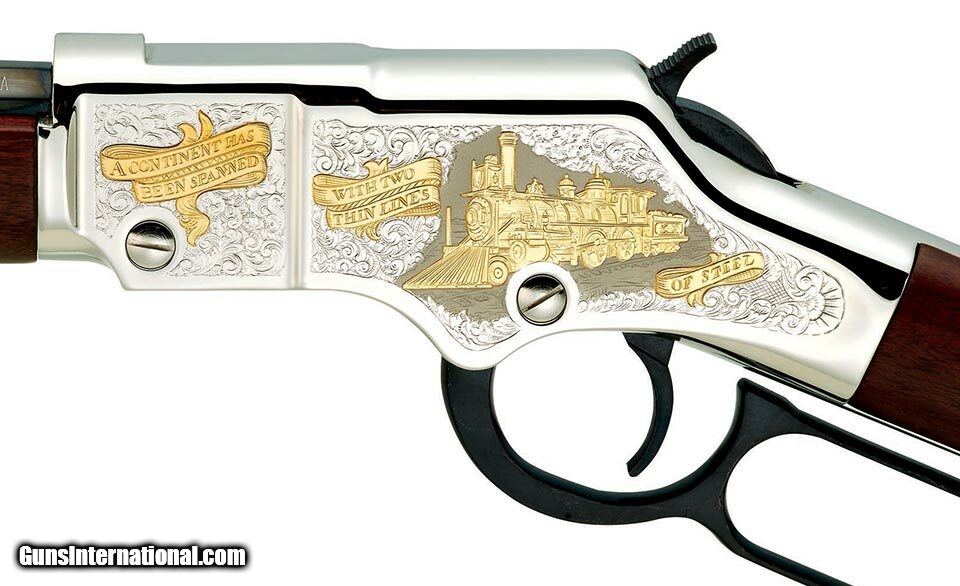 Description: Manufacturer: Henry Repeating Arms Co. Model: Golden Boy - American Railroad Tribute Edition SKU: H004RR Caliber: .22 S/L/LR Capacity: (16) .22 LR, (21) .22 Short Barrel: 20" Octagonal Blued Steel Twist: 1:16" Receiver Finish: Nickel Plated, Engraved with 24K Gold Plating Stock: American Walnut, Nickel Plated Buttplate Length of Pull: 14" Sights: Adjustable Semi-Buckhorn with White Diamond Insert Rear and Brass Beaded Front Overall Length: 38.5" Weight: 6.75 lbs All items are factory new in box unless otherwise stated. Based on the information available to us, the above specifications describe this item to the best of our knowledge. For further information, please contact or visit the manufacturer's . SOLD |