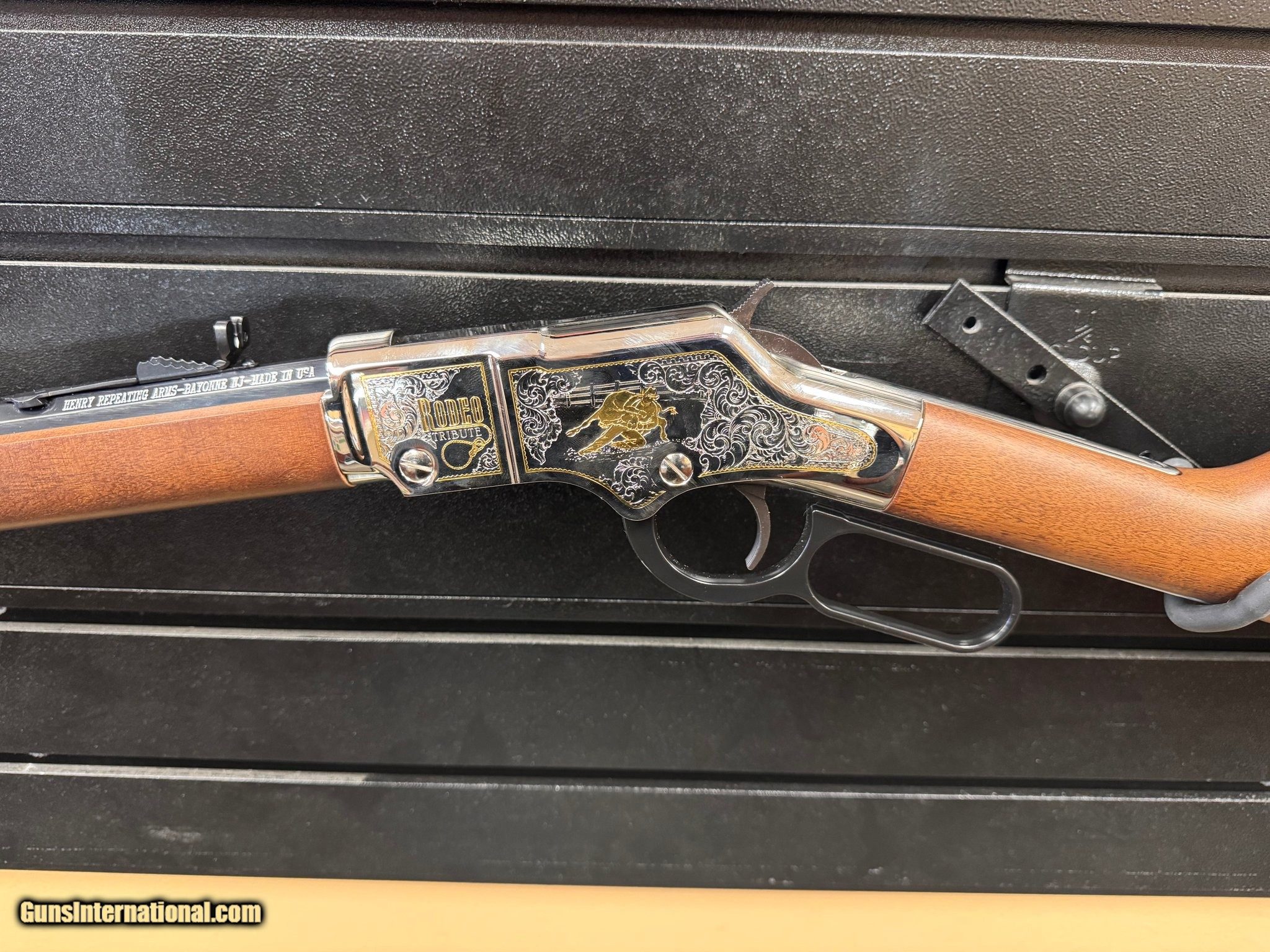 Description: Guns Listing ID: 604697 Golden Boy American Rodeo Tribute 22 Short ,Long ,LR 16 LR/21 Short 20\" Nickel Plated American Walnut Right Hand, OG box This special-edition firearm celebrates classic American rodeo heritage with distinctive engraved artwork and the iconic Golden Boy brasslite receiver. Built on Henry’s renowned lever-action platform, this rifle combines smooth operation, fine craftsmanship, and collectible appeal. The American Rodeo edition is a limited production model, making it an excellent choice for collectors, enthusiasts of Western firearms, or fans of Henry Repeating Arms quality. Manufacturer: HENRY Model: Golden Boy American Rodeo Caliber Info: .22 LR Condition: Used - Non-Certified Barrels: 20" BARREL Action: LEVER ACTION Finish: silver/wood Price: $1,210.99 Contact Seller |