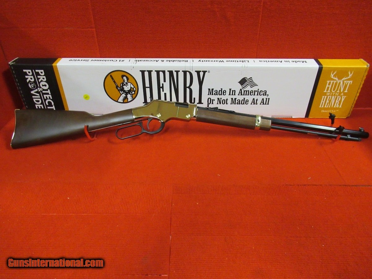 Description: Guns Listing ID: 727773 #83B Gun is in excellent condition. Hun comes unfired in its original box with paperwork. 20-inch octagon barrel with rear adjustable sights, tube fed. Very nice gun. *!^ SOLD Manufacturer: HENRY Model: GOLDEN BOY - H004V Caliber Info: .17 HMR Condition: Used - Non-Certified Barrels: 2 BARREL |