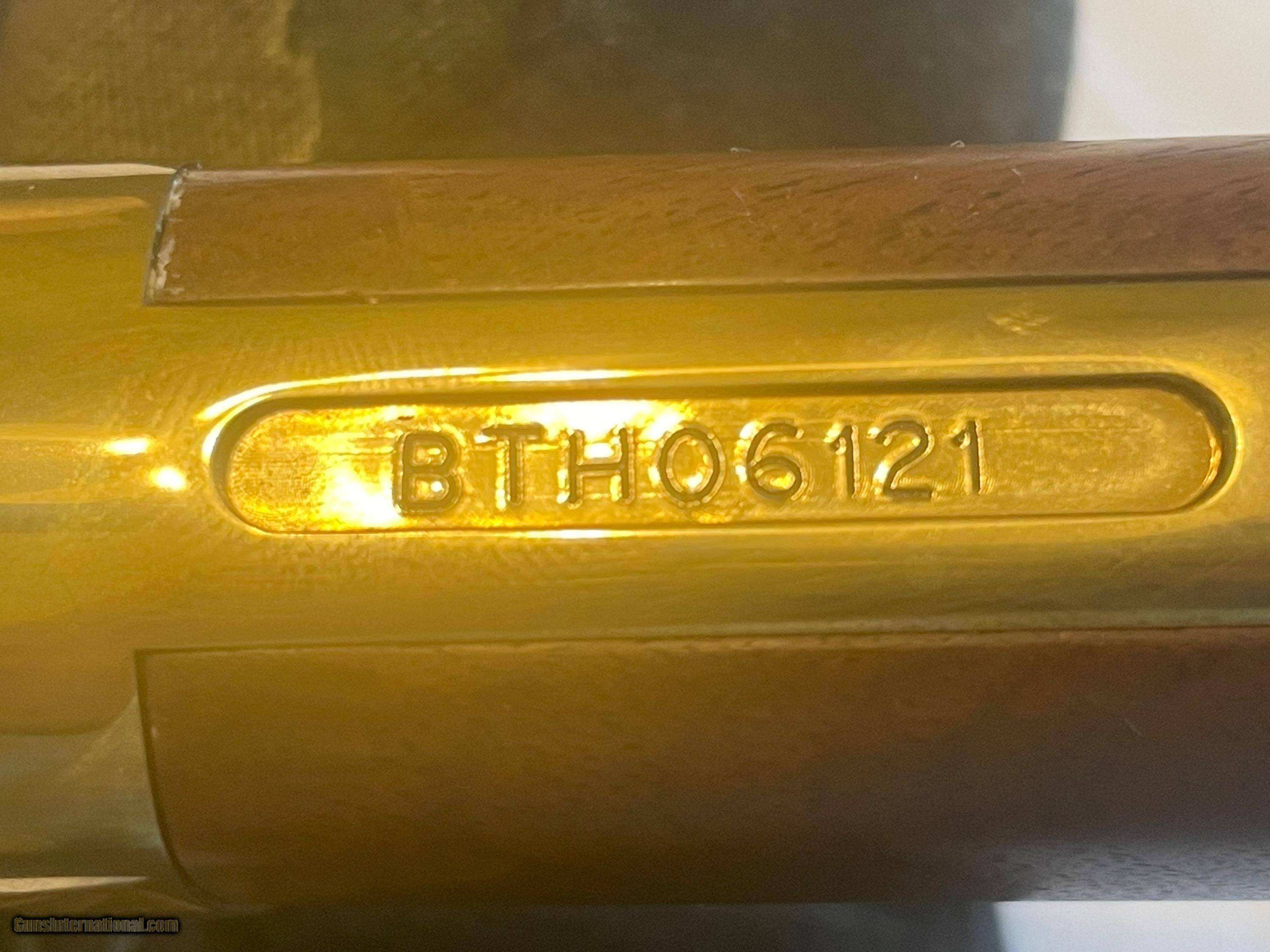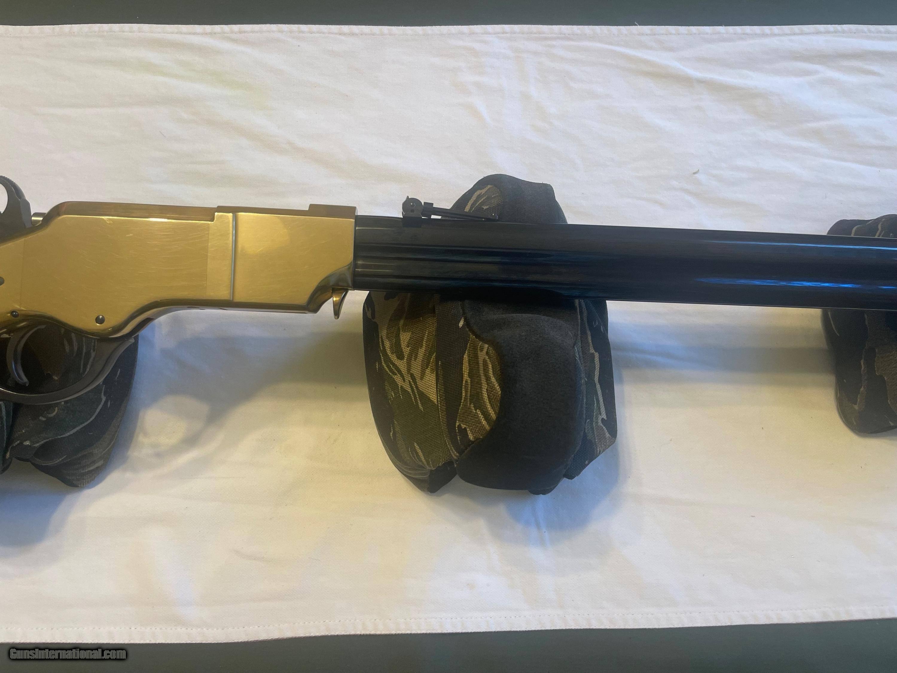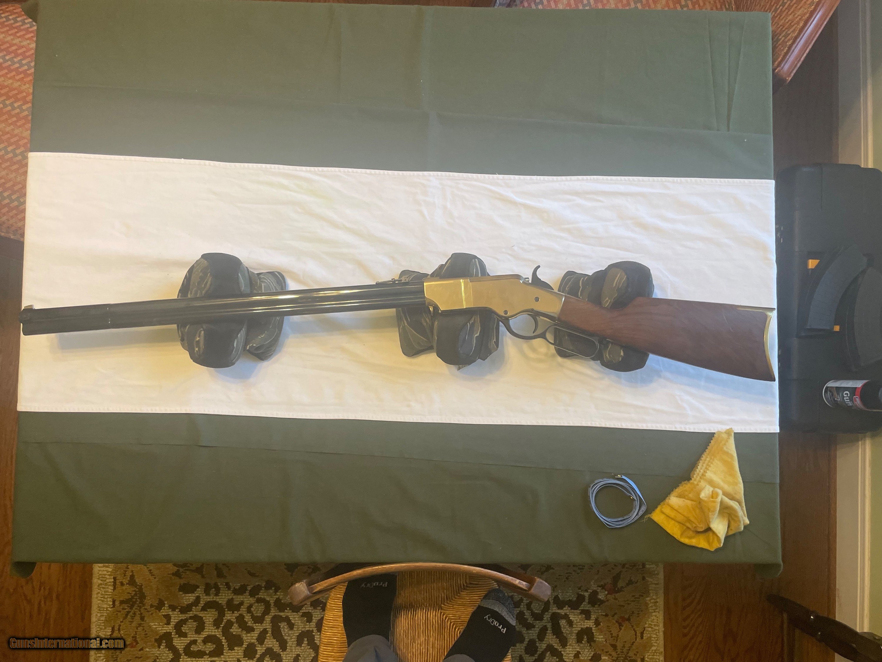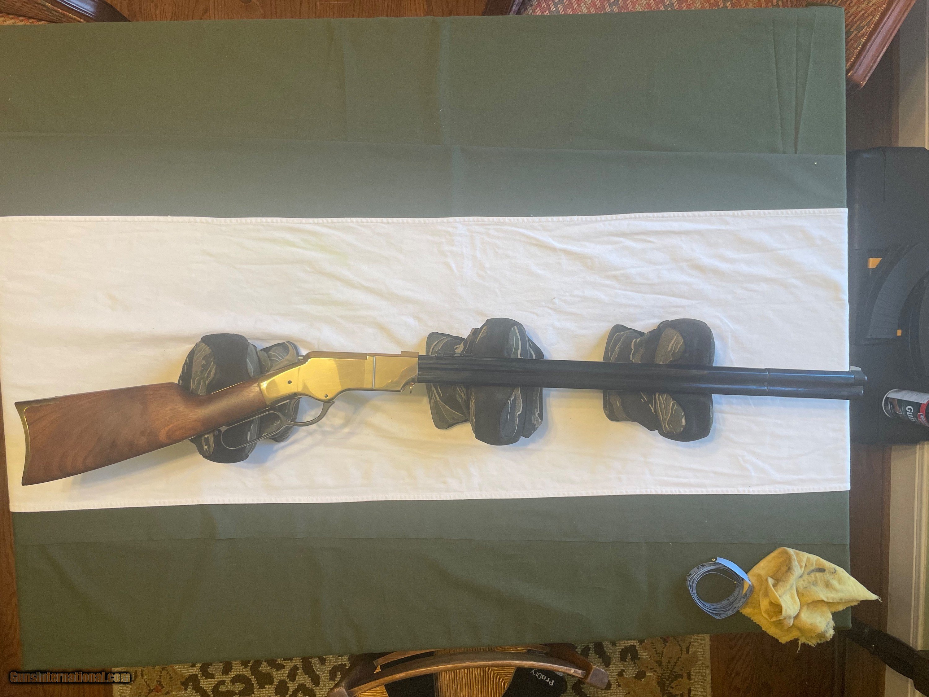 Description: For sale from South Texas ranch owner and hunter's private gun collection, a Henry Golden Boy lever action .44-40 unfired rifle with one mark on left side of butt stock (picture shown) otherwise in excellent condition and in original box with CD and paperwork from Bass Pro. SOLD Rifle Caliber: .44-40 Winchester Manufacturer: Henry Model: Golden Boy Serial Number: BTH06121 Barrel Length: 24” Condition: Very Good Metal Condition: Excellent Wood Condition: Very Good with single mark on butt stock Bore Condition: Excellent Action: Lever action |