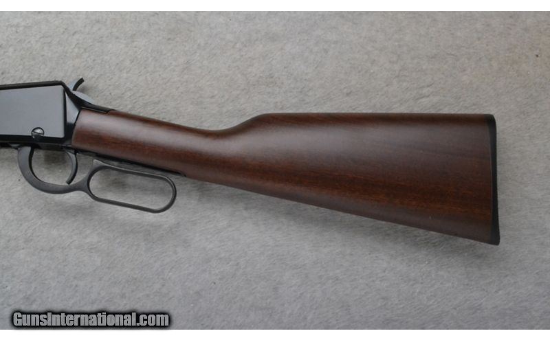Description: This Model H001T is a right hand lever action repeating rifle in .22 Short, Long or Long Rifle Cal. It has a 20 inch octagon barrel. A blade front sight with a brass bead and an adjustable buckhorn middle sight. The receiver is dovetailed. The butt stock is a smooth grip walnut straight grip. The forearm is a smooth grip walnut with a barrel band. .22 Short/Long/Long Rifle SOLD Chambers: Tube magazine. Metal Condition: Excellent. Wood Condition: Excellent. Bore Condition: Excellent. Barrels: 20 inch octagon barrel. Stock Dimensions: LOP 13 3/4 inches. Fore End: Smooth grip walnut with a barrel band. Butt Pad: Henry checkered black plate. Weight: 6 lb. 0 oz. Sights: Blade front with a brass bead. Adjustable buckhorn middle. Dovetailed. Item Location: Richfield, WI |