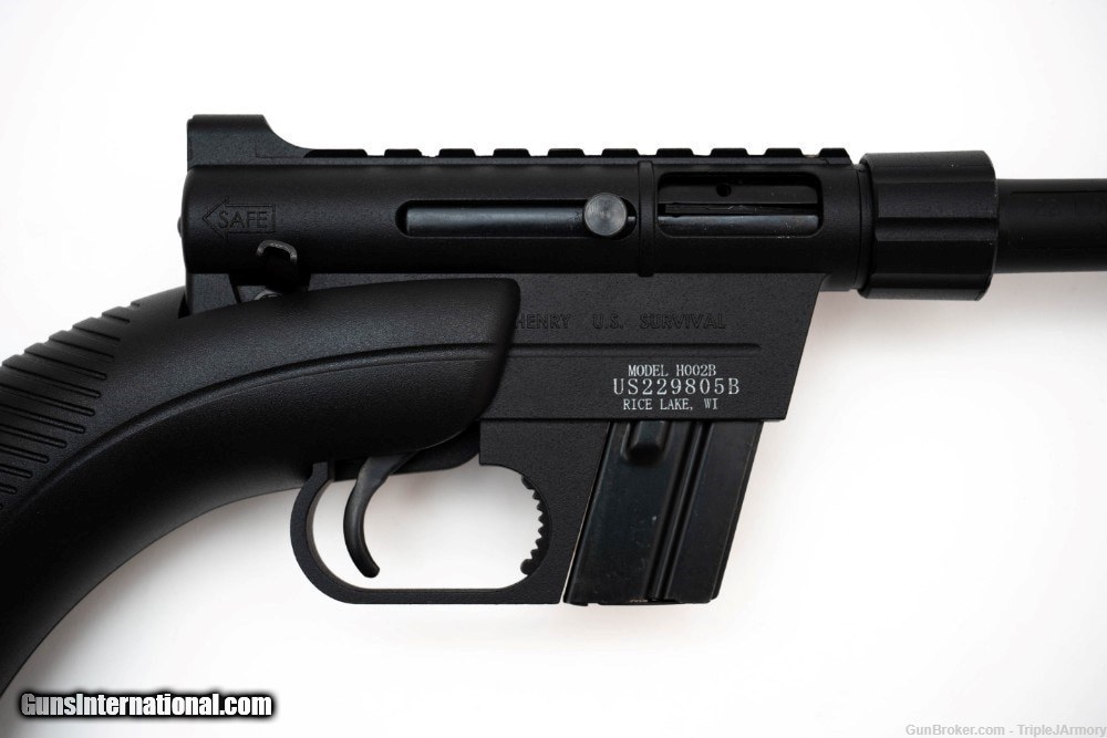 Description: Guns Listing ID: 914358 This Henry H002BSGB Survival rifle is a NEW gun with a 16 inch barrel chambered for .22 lr ONLY with a fixed front sight post. The barrel separates from the receiver very easily via a threaded cap near the receiver. The receiver is also removable from the plastic stock that has an open compartment in the back to store all of the weapons components inside and is meant to be waterproof when closed. It comes with two magazines that hold eight rounds. It includes the box and a survival pack. Manufacture: Henry Model: H002BSGB U.S. Survival Caliber: .22lr Barrel length: 16 inches SOLD Manufacturer: HENRY Model: H002BSGB Caliber Info: .22 LR Condition: Used - Non-Certified Barrels: 16 BARREL Finish: BLACK |