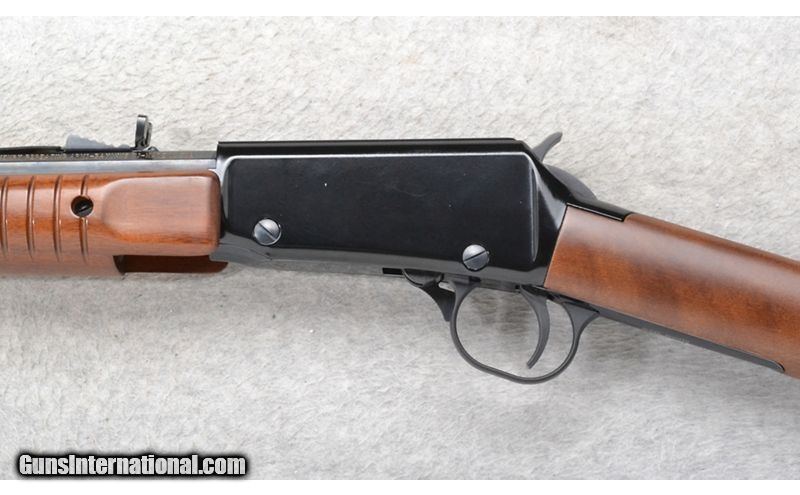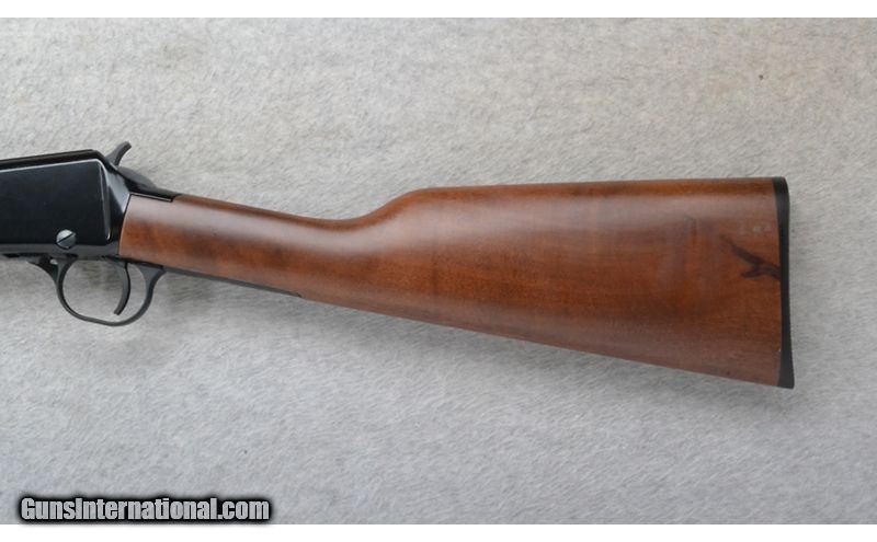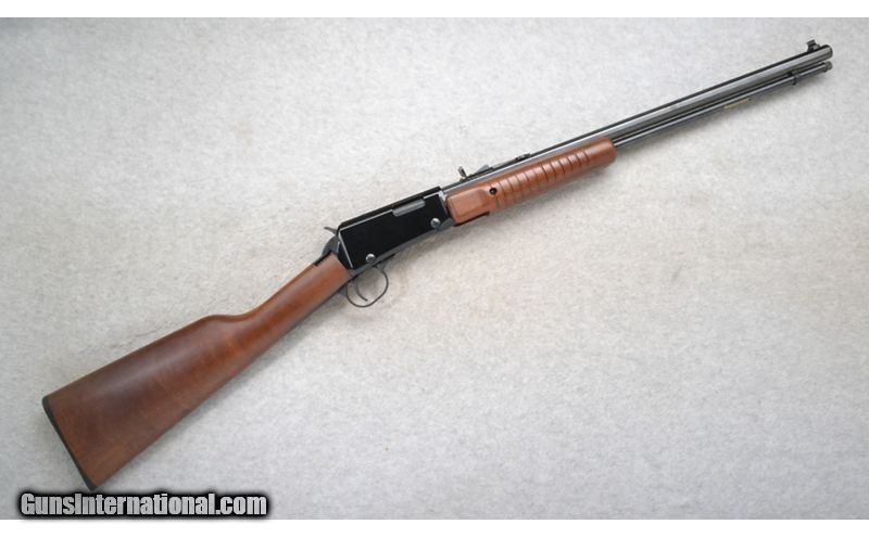 Description: This Henry Model H003TM is a right hand pump action repeating rifle in .22 Magnum Cal. It has a 20.5 inch octagon barrel. A blade front sight and an adjustable notch middle sight. It is dovetailed. The butt stock is a smooth grip hardwood straight grip. The forearm is a grooved grip hardwood. .22 WMR SOLD Chambers: Tube magazine. Metal Condition: Excellent. Wood Condition: Excellent. Bore Condition: Excellent. Barrels: 20.5 inch octagon. Stock Dimensions: LOP 13 3/4 inches. Fore End: Grooved grip hardwood. Butt Pad: Henry checkered black plate. Weight: 6 lb. 0 oz. Sights: Blade front. Adjustable notch middle. Dovetailed. Item Location: Richfield, WI |