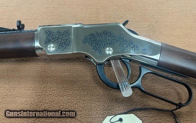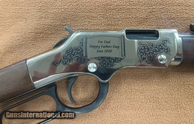 Description: Guns Listing ID: 900203 OK RIGHT OFF THE BAT. GUN OVERALL IS VERY GOOD CONDITION EXCEPT THE SCRATCHES AS SEEN IN PICTURES. PREVIOUS OWNER SET IT ON BENCH WITH NO PADDING SO THE RESULT WAS SCRATCHES ON THE WOOD, AND BARREL BAND. BORE IS GREAT AND GUN IS SUPER SMOOTH AND FUNCTIONS GREAT. IF YOU DONT LIKE THE \"FATHERS DAY\" YOU CAN CONTACT HENRY DIRECTLY AND THEY CAN GET YOU A DIFFERENT COVER PIECE WHICH IS PRETTY EASY TO REPLACE NO GUN SMITH NEEDED. SOLD Manufacturer: HENRY Model: H004SFD Golden Boy Silver Fathers Day 22 LR Caliber Info: .22 LR Condition: Used - Non-Certified Barrels: 20 BARREL Finish: SILVER |
