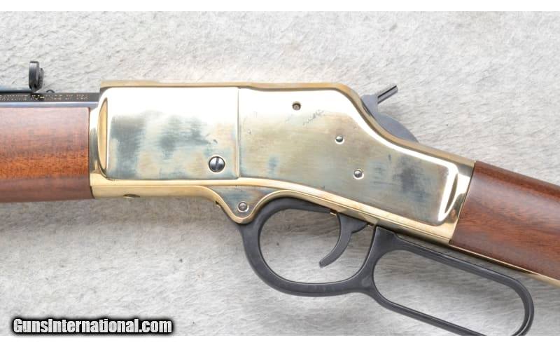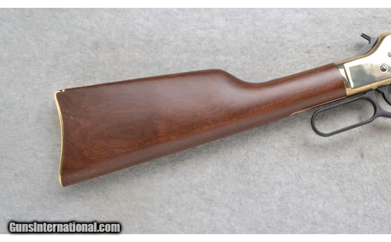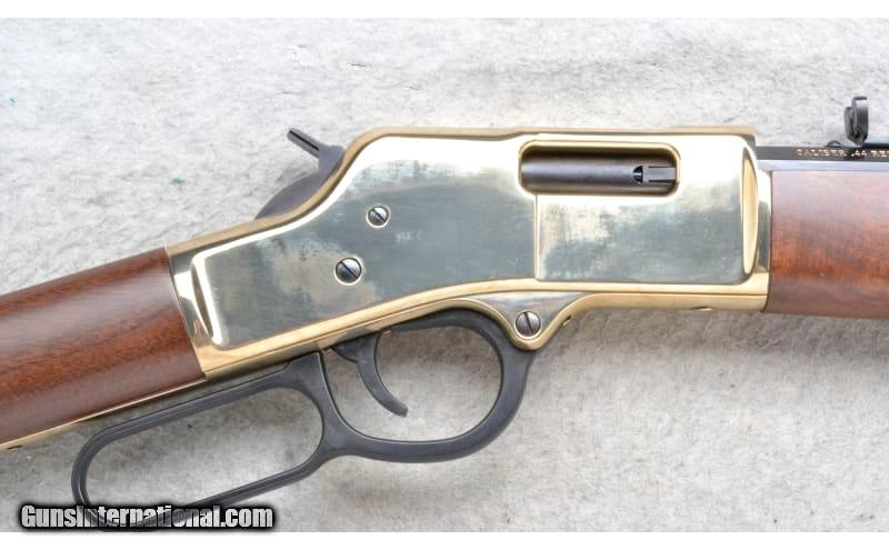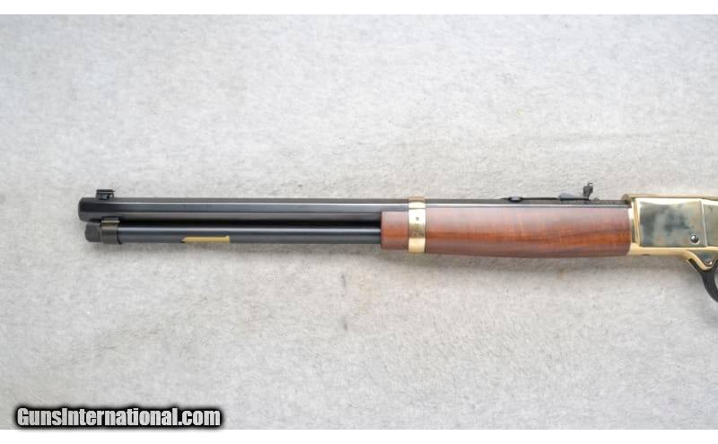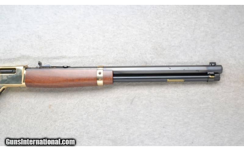Description: This Henry Model H006 is a right hand lever action repeating rifle in .44 Magnum Cal. It has a 19.75 inch octagon barrel. A raised blade front sight and an adjustable notch middle sight. It is drilled and tapped for a scope mount. The butt stock is a smooth grip walnut straight grip. The forearm is a smooth grip walnut with a barrel band. .44 Magnum SOLD Chambers: Tube Magazine. Metal Condition: Barrel has a couple of rust spots on the right side close to the bore. Receiver has some cloudy spots in the finish. Wood Condition: Excellent. Bore Condition: Excellent. Barrels: 19.75 inch octagon. Stock Dimensions: LOP 14.5 inches. Fore End: Smooth grip walnut with a barrel band. Butt Pad: Smooth curved plate. Weight: 7 lb. 10 oz. Sights: Raised blade front with a brass bead. Adjustable notch middle. Drilled and tapped. Item Location: Richfield, WI |