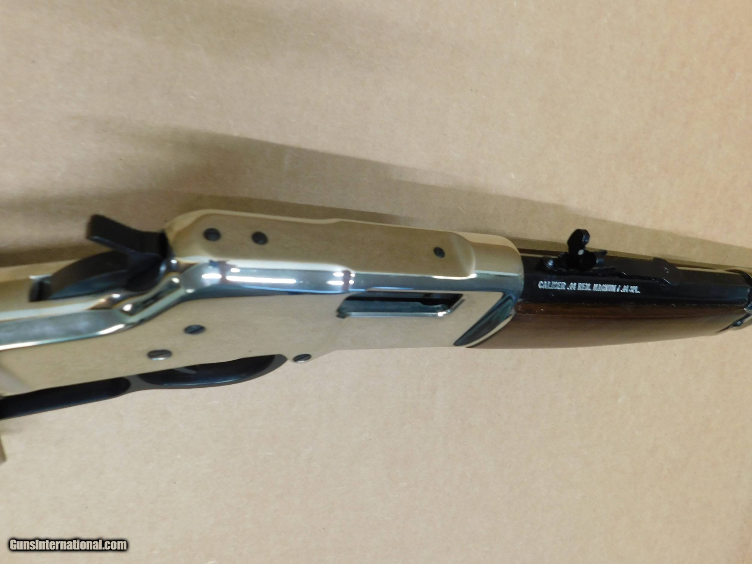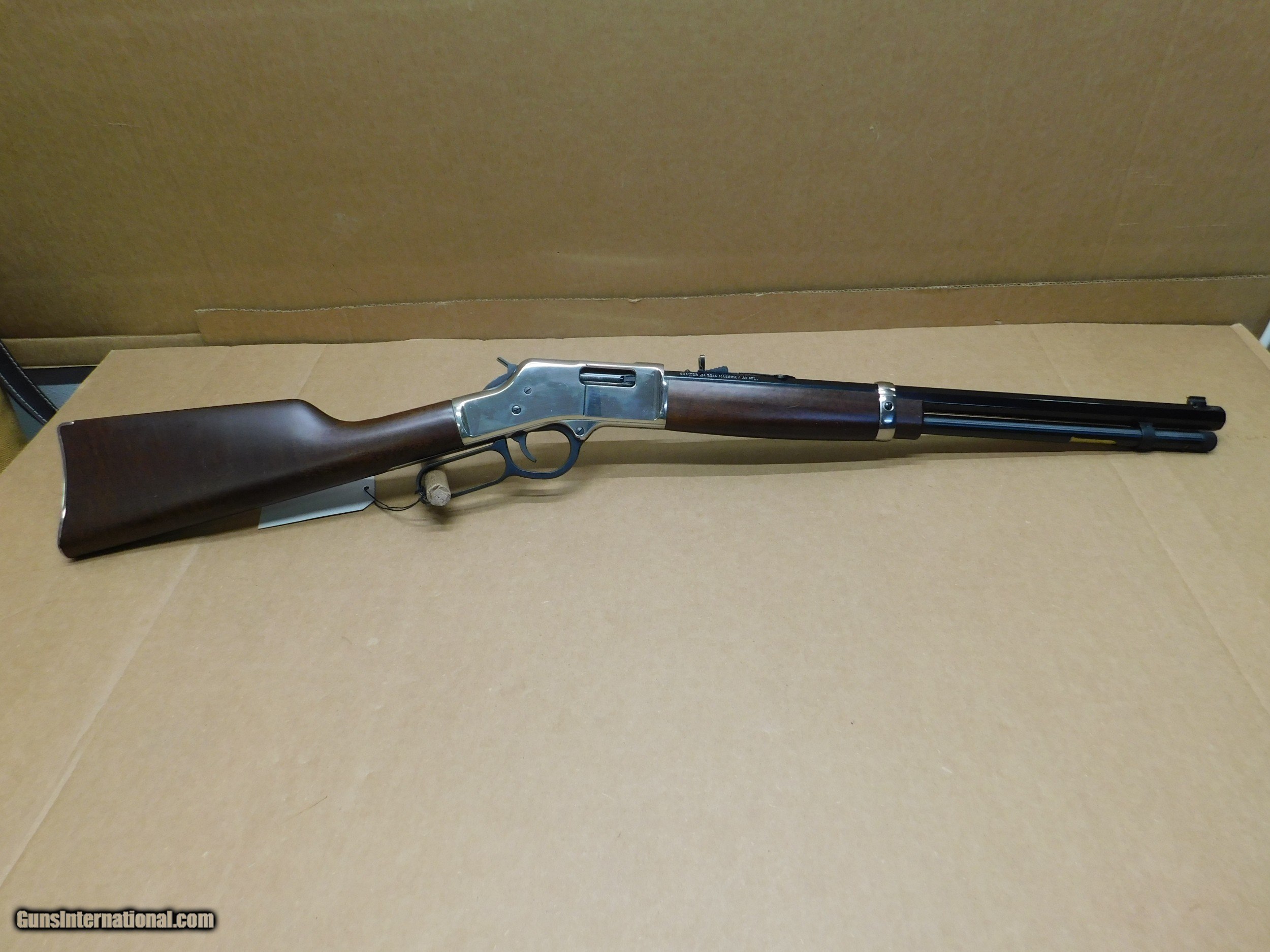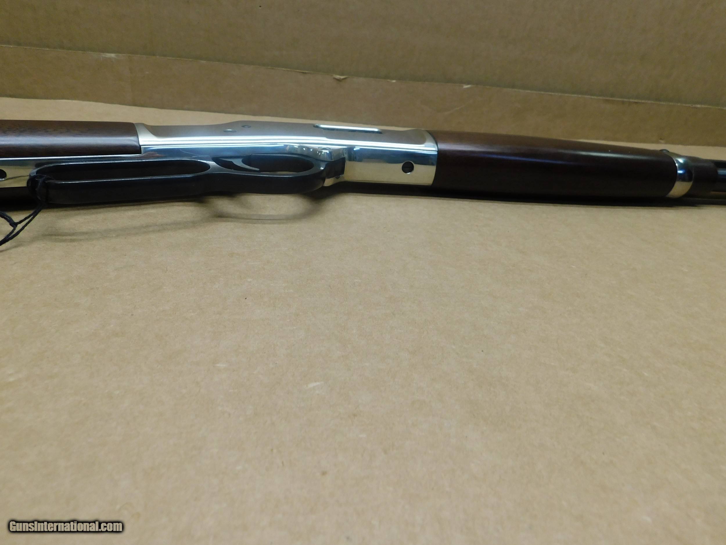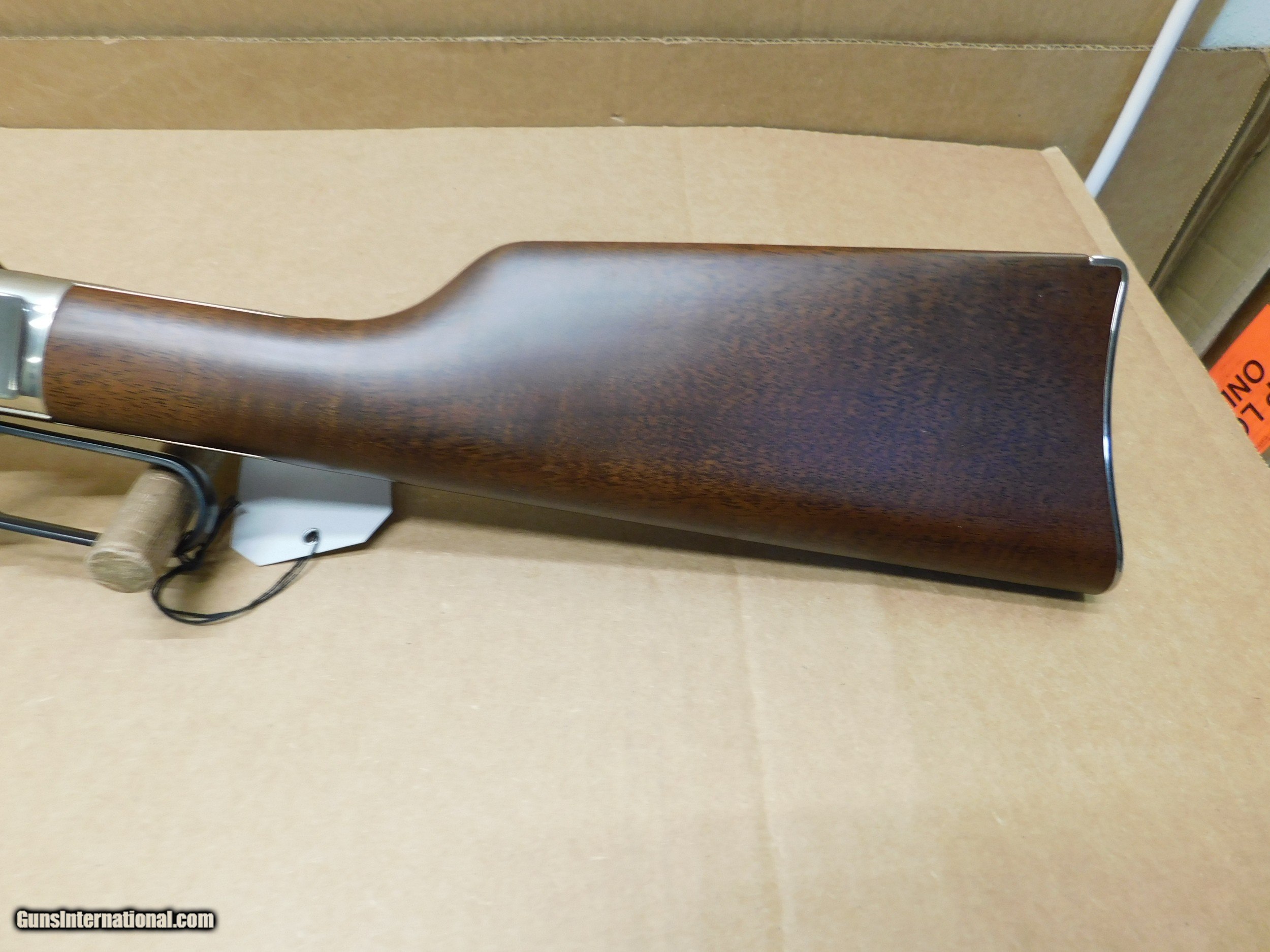 Description: This is a new in the box Henry H0065 lever action 44 mag rifle It is a 5+1 shot with a 20" blue /silver barrel "Silver Big Boy" SN-SB00954 SOLD Rifle Caliber: .44 Magnum Manufacturer: Henry Model: H0065 Serial Number: SB00954 Barrel Length: 20 Condition: Unfired/factory new Metal Condition: Excellent Wood Condition: Excellent Bore Condition: Excellent Barrels: Blue Barrel Type: Round Action: Lever Stock: Wood Finish: Blue Extras: "Silver Big Boy |