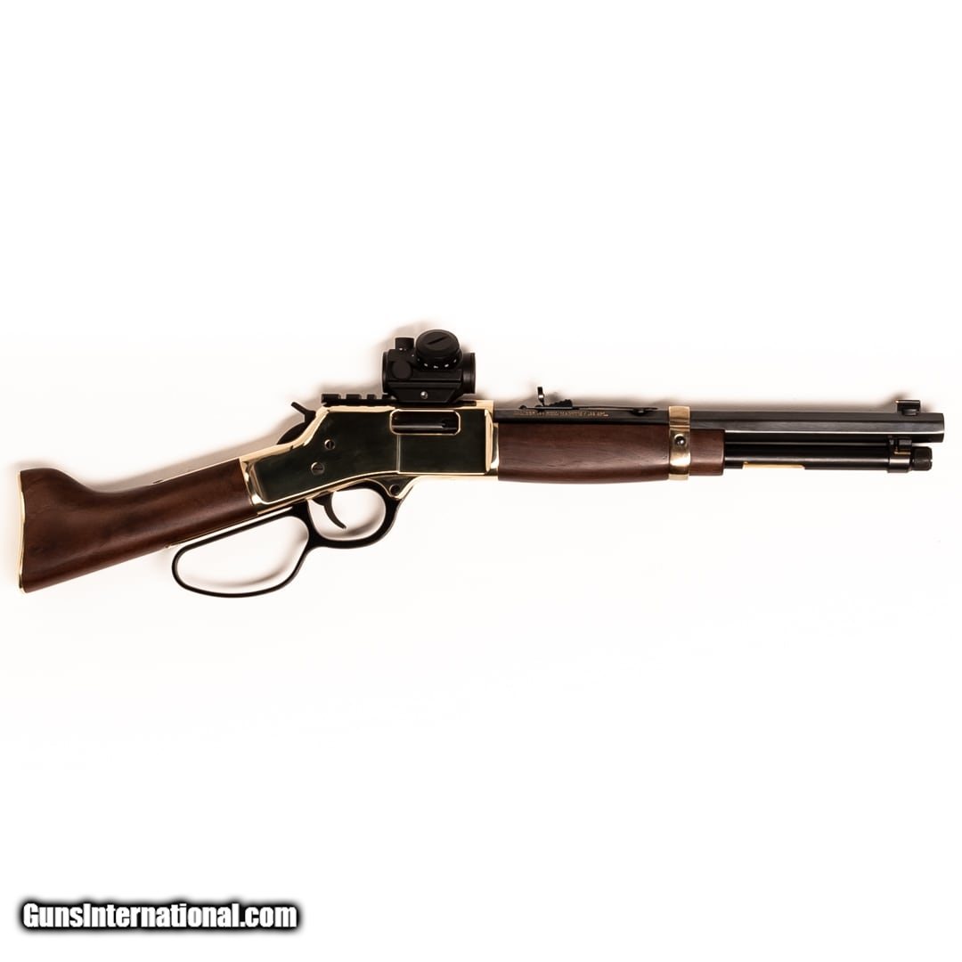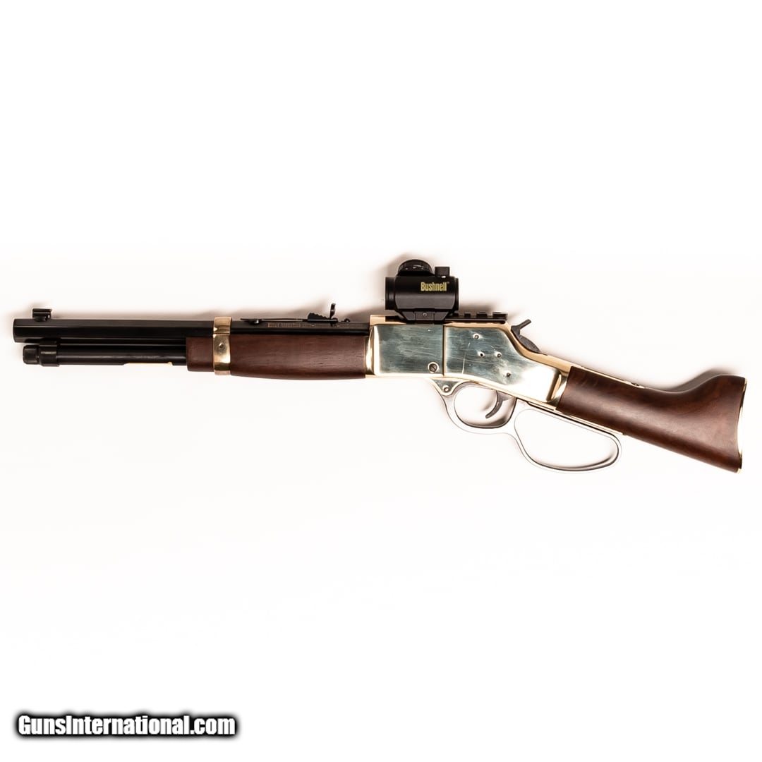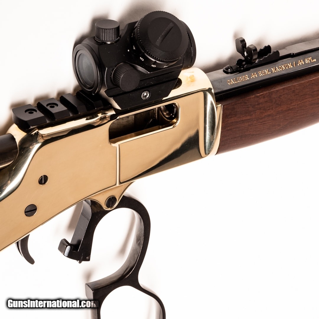 Description: Guns Listing ID: 635537 This Henry Mare‚‚s Leg is a lever-action handgun. This style of lever-gun has also been used throughout history as a compact self-defense firearm but was also popularized by Steve McQueen. This beautiful piece is in excellent condition and includes the original box and owner‚‚s manual. A Bushnell red dot sight is include SOLD Manufacturer: HENRY Model: H006CML BIG BOY MARES LEG Caliber Info: .44 MAG/.44 SPL Condition: Used - Certified Barrels: 12.9 barrel Finish: BLACK AND GOLD |