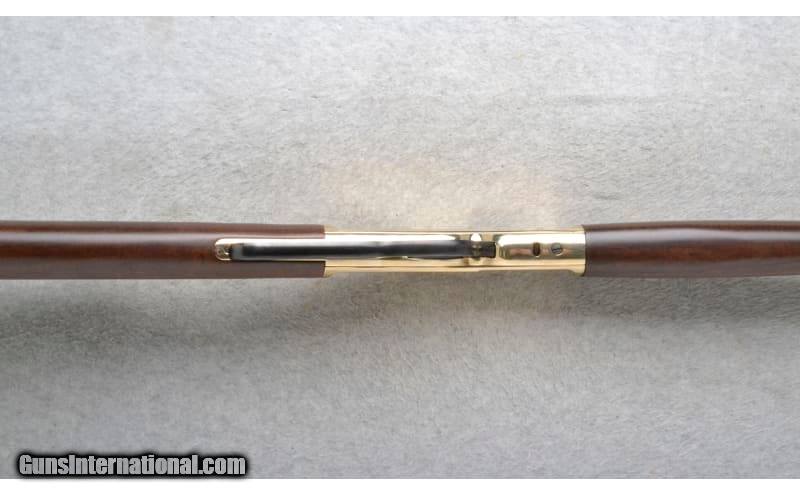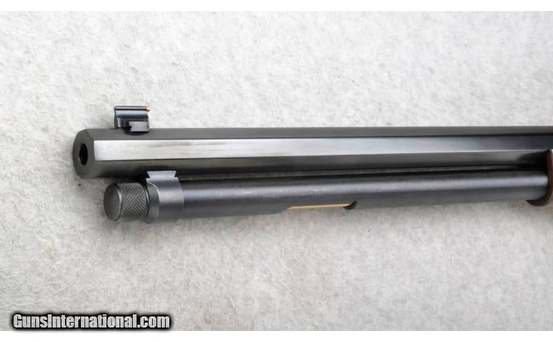 Description: This Henry Model H006m is a right hand lever action repeating rifle in .357 Magnum/.38 Special Cal. It has a 20 inch octagon barrel. A raised blade front sight with a brass bead and an adjustable notch middle sight. It is drilled and tapped. The butt stock is a smooth grip walnut straight grip. The forearm is a smooth grip walnut with a brasslite barrel band. The receiver and butt plate are brasslite. .357 Mag./.38 Special SOLD Chambers: Tube magazine. Metal Condition: Excellent. A few very minor surface blemishes. Wood Condition: Excellent. Bore Condition: Excellent. Barrels: 20 inch octagon barrel. Stock Dimensions: LOP 14 1/2 inches. Fore End: Smooth grip walnut with a brasslite barrel band. Butt Pad: Smooth curved brasslite plate. Weight: 8 lb. 4 oz. Sights: Raised blade front with a brass bead. Adjustable notch middle. Drilled and tapped. Item Location: Richfield, WI |