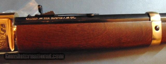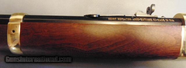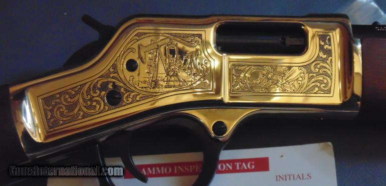 Description: The American Oilman;“Henrys Newest” Tribute Edition Rifle. (For those who dared to dream and labored to make it a reality.) /font> For SALE is a NEW: Henry H006OM Big Boy Lever 44Magnum American OILMAN 20" 10rd Blued. In 1859 oil was discovered in Titusville, PA and so began the dream of the American Oilman. Adventurer, explorer and ultimate risk-taker, the American Oilman continues to inspire and define what it means to be a wildcatter. To honor this inspiration, Henry Repeating Arms is proud to introduce the American Oilman Tribute Edition. The 19th century oilfield was a dangerous place. It took a special blend of courage and curiosity to become an oilman. The hazards of unexplored fields, threats of well fires and lost fortunes were only a few of the many obstacles an oilman encountered. But each step into the oilfield, into the unknown, created the American Oilman of today. Whether it’s marrying hydraulic fracturing with horizontal drilling, tapping into vast new oil supplies in onshore shale fields, or finding deepwater drilling efficiencies, the American Oilman continues a tradition of exploration and technological development that lessens our dependence on foreign oil and reduces our footprint in the field. Though larger-than-life oil barons like J.D. Rockefeller and J. Paul Getty are gone, we salute those who blaze the trail today; the driver of the tank truck, the foreman in the field, the well-treater, the geologist, the engineer. They are the American Oilman — still exploring, innovating and propelling the American oil industry into the future. The Henry Big Boy .45 Colt Cowboy edition captures the wild west adventures of cowboy life on the trail. The Henry Big Boy .44 Magnum Wildlife Edition emulates the pulse quickening thrill of a trophy buck leaping into view. Each genuine American walnut buttstock and forearm are engraved using techniques which combine todays engraving technologies with hand craftsmanship passed from generations past. After engraving, artisans individually hand paint the buttstock and forearm using multiple acrylic colors. The original artwork is visually used as a guide, but subtle detailing makes each unit truly one of a kind. SPECIFICATIONS: