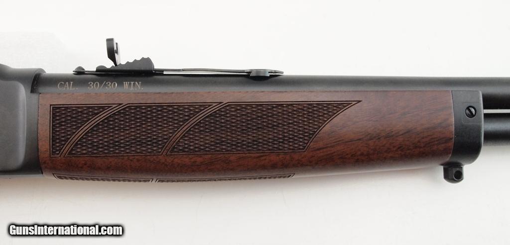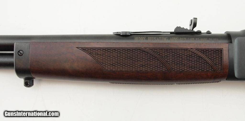 Description: Henry H009, .30-30, 20" bbl, shiny bore, good rifling, blued finish, adjustable rear sight, elevated bead front sight, very nice checkered wood stock, and black Henry recoil pad. This rifle is in excellent condition. Add 3% for Credit Card Shipping $30.00 SOLD |