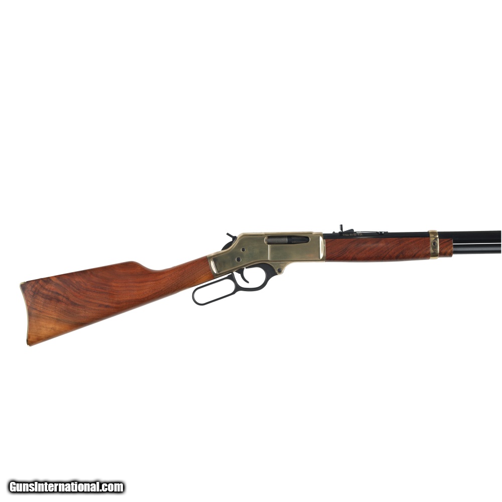 Description: This Henry 30-30, Manufactured in Bayonne NJ, is in un fired condition with its factory box. Fitted with an attractive set of figured walnut stocks that are in near perfect condition, and no serious flaws across the barrel, this rifle is almost prefect. The only blemish comes from the fact that the previous owner stored the rifle with copious amounts oil on it so the brass action has received some tarnishing and it also was stored with a zip tie around the lever making a small line around the wrist. Manufactured in: USA Hand: Right Hand Action Finish: Polished Hardened Brass Metal Finish: Original Barrel Length: 20 Inches Barrel Condition: As New Stock Finish: Original Stock Condition: As New Type of Butt: Crescent Brass Plate Grip: Straight Grip Forend: Not Checkered SOLD Manufacturer: Henry Repeating Arms Model: H009B Caliber Info: .30 - 30 Condition: Preowned Metal Condition: Very Good Action: Lever Action Triggers: Single Fore End: Not Checkered LOP: 14 1/2 Finish: Original Weight: 8.6 lbs Case: Makers Box |