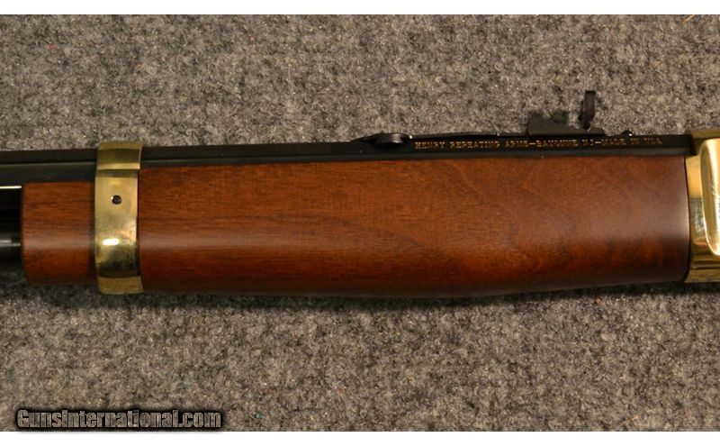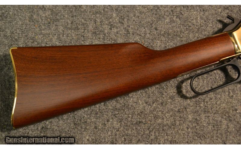 Description: The Henry® .30-30 is a favorite fast handling Lever-Action Rifle for whitetail deer hunting, though it has enough power for most big game hunting in North America. The Henry .30-30 is an attractive firearm with an American walnut stock, and a brass receiver with a solid top and side ejection; the receiver is drilled and tapped for a scope mount. The buttplate and barrel band are also brass, and the octagon barrel and lever are blued. There is no loading port on the side of the receiver as ammunition is loaded directly into the tubular magazine from the top. The gold bead front sight is dovetailed into the barrel, and the semi-buckhorn rear sight is adjustable. The trigger pull is crisp and clean, allowing for fine accuracy. The lines of the Henry .30-30 Lever-Action Rifle are traditionally American, reminiscent of the Old West. The cartridge it fires has proven itself as an excellent round for deer hunting for over a century. .30-30 Winchester SOLD Chambers: 1 Metal Condition: Excellent Wood Condition: Excellent Bore Condition: "Excellent, unfired Triggers: Factory Stock Dimensions: 13 3/4" LOP Fore End: Smooth Butt Pad: Brass Weight: 8 1/2 lbs Sights: """U"" notch, windage adjustable Item Location: Thornton, CO |
