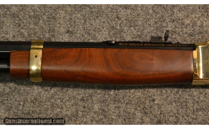Description: The Henry® .30-30 is a favorite fast handling Lever-Action Rifle for whitetail deer hunting, though it has enough power for most big game hunting in North America. The Henry .30-30 is an attractive firearm with an American walnut stock, and a brass receiver with a solid top and side ejection; the receiver is drilled and tapped for a scope mount. The buttplate and barrel band are also brass, and the octagon barrel and lever are blued. There is no loading port on the side of the receiver as ammunition is loaded directly into the tubular magazine from the top. The gold bead front sight is dovetailed into the barrel, and the semi-buckhorn rear sight is adjustable. The trigger pull is crisp and clean, allowing for fine accuracy. The lines of the Henry .30-30 Lever-Action Rifle are traditionally American, reminiscent of the Old West. The cartridge it fires has proven itself as an excellent round for deer hunting for over a century. .30-30 Winchester SOLD Chambers: 1 Metal Condition: Excellent Wood Condition: Excellent Bore Condition: Excellent Triggers: Factory Stock Dimensions: 13 3/4" LOP Fore End: Smooth Butt Pad: Brass Weight: 8 1/2 lbs Sights: """U"" notch, windage adjustable Item Location: Thornton, CO |