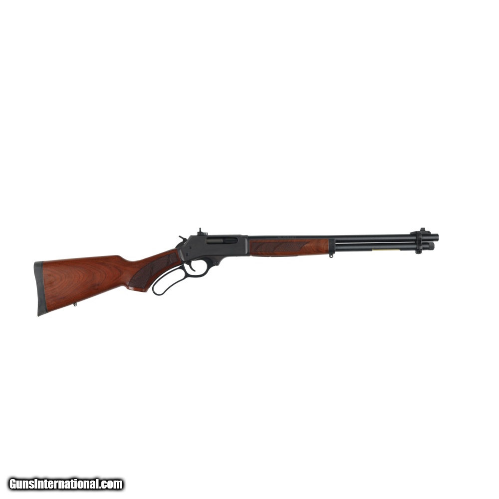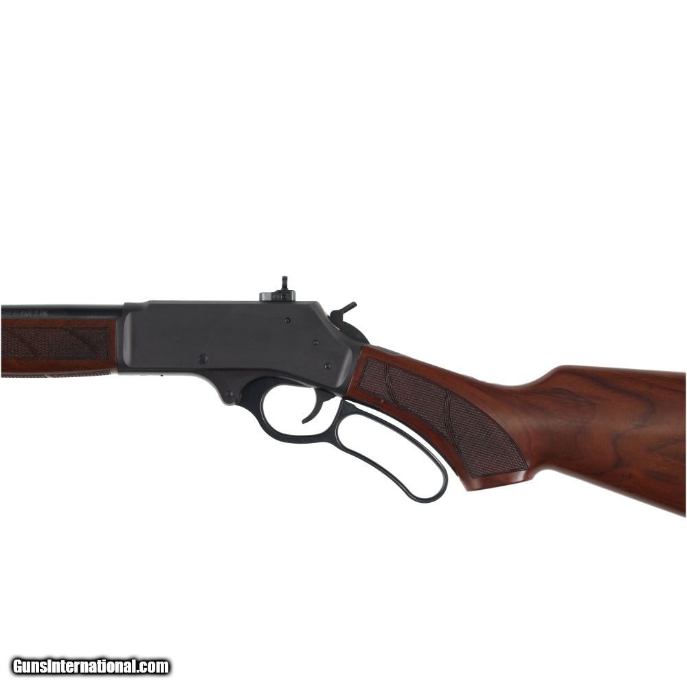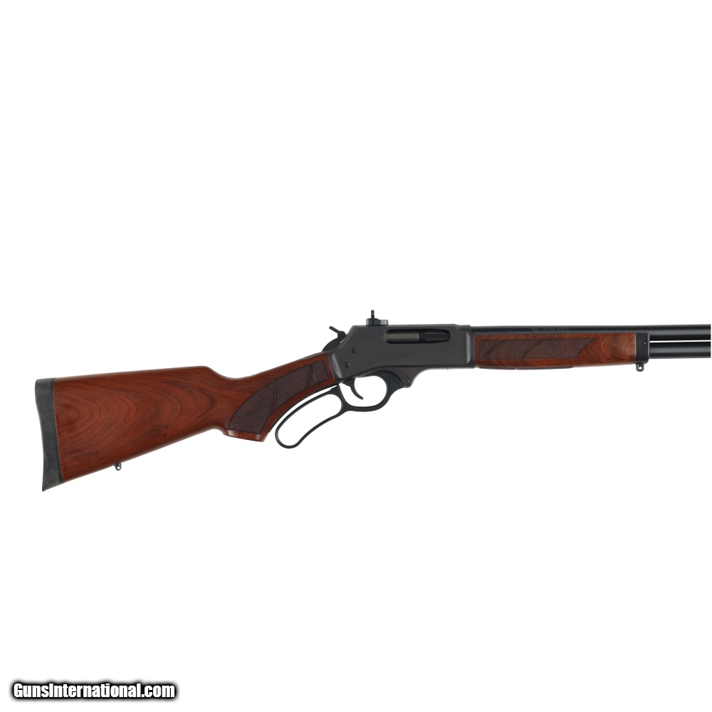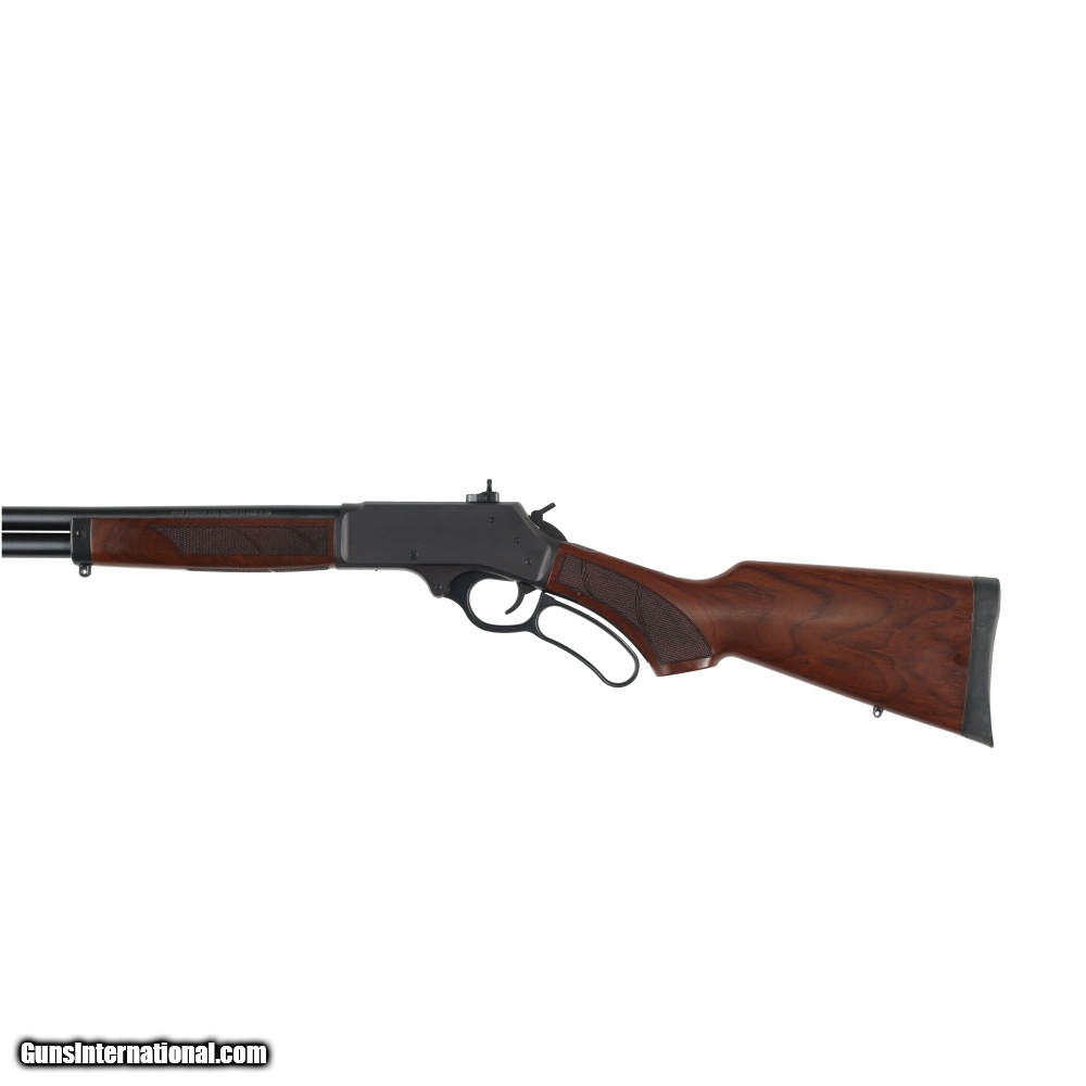 Description: This Henry 45-70, Manufactured in Bayonne NJ, is in un fired condition with its factory box. Fitted with an attractive set of figured walnut stocks that are in near perfect condition, and no serious flaws across the barrel, this rifle is almost prefect Manufactured in: USA Hand: Right Hand Action Finish: Blue Metal Finish: Original Barrel Length: 18 1/2" Barrel Condition: As New Stock Finish: Original Stock Condition: Very Good Type of Butt: Factory Pad Pad Thickness: 1 Inch Grip: Pistol Forend: Checkered Extra Barrels: No. SOLD Manufacturer: Henry Repeating Arms Model: H010 Caliber Info: .45-70 Condition: Preowned Metal Condition: Very Good Action: Lever Action Triggers: Single Fore End: Checkered Butt Pad: 1 Inch LOP: 14 1/4 Finish: Original Weight: 7.2 lbs Extras: No. Case: Factory Box |