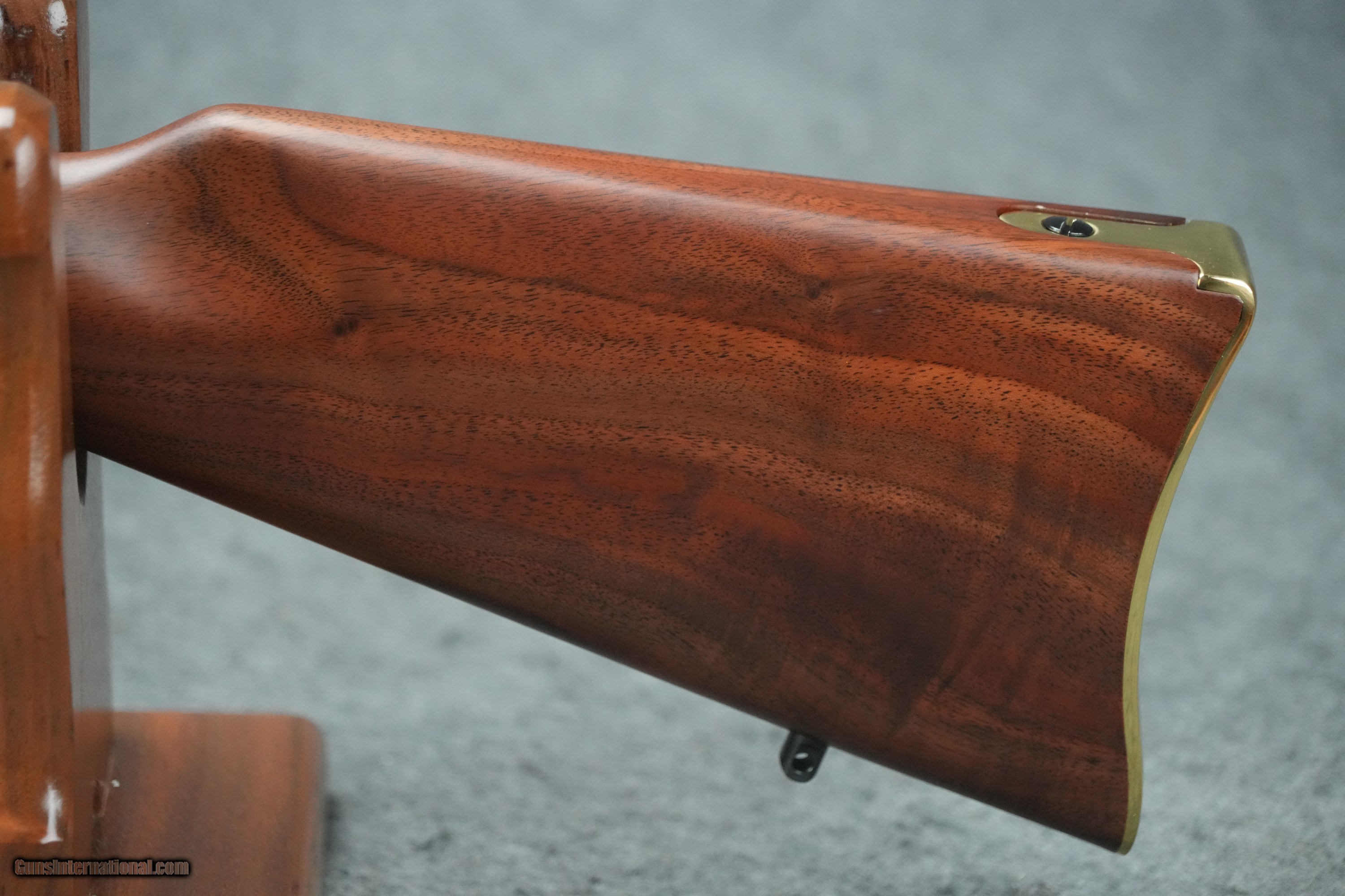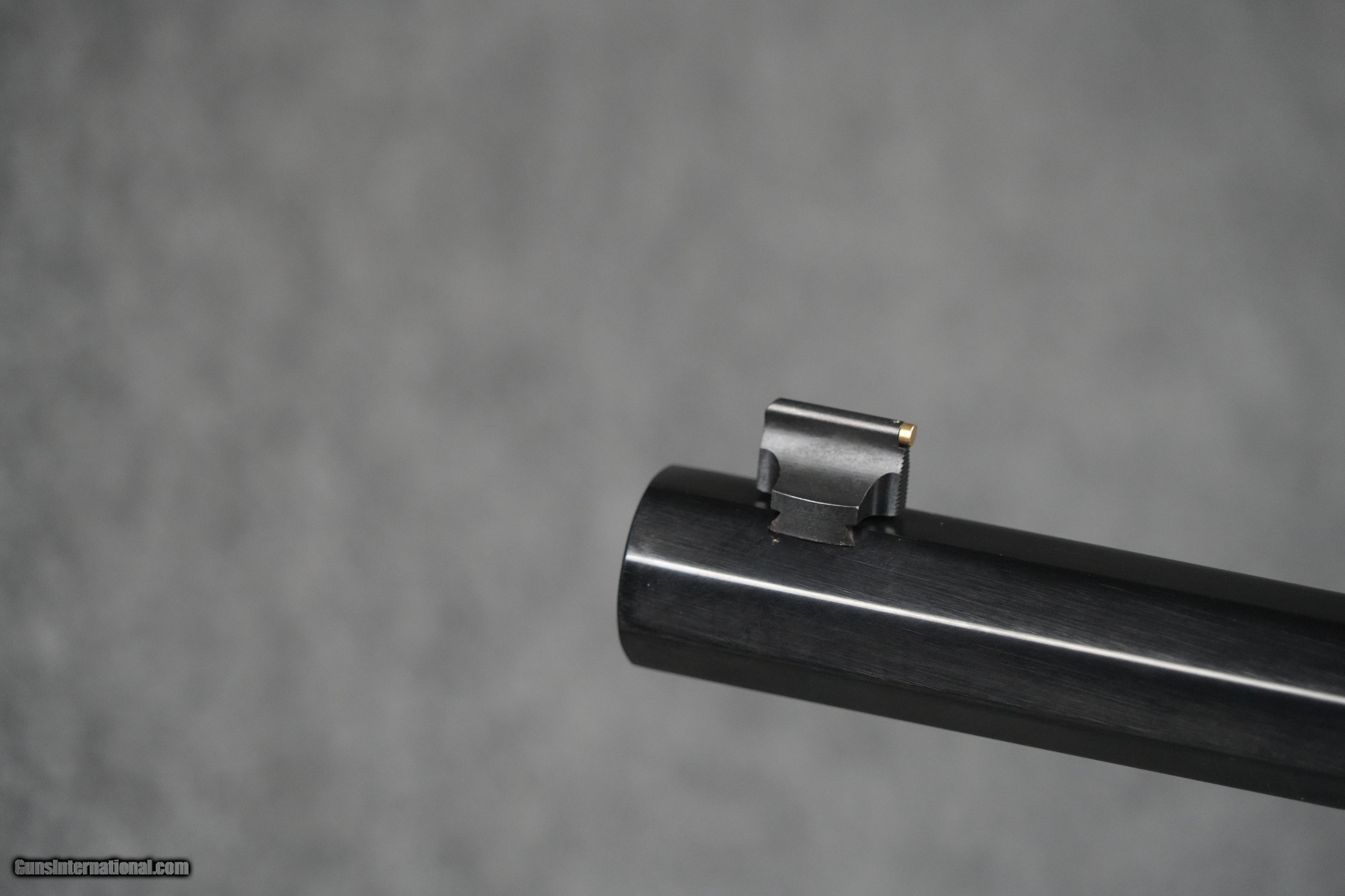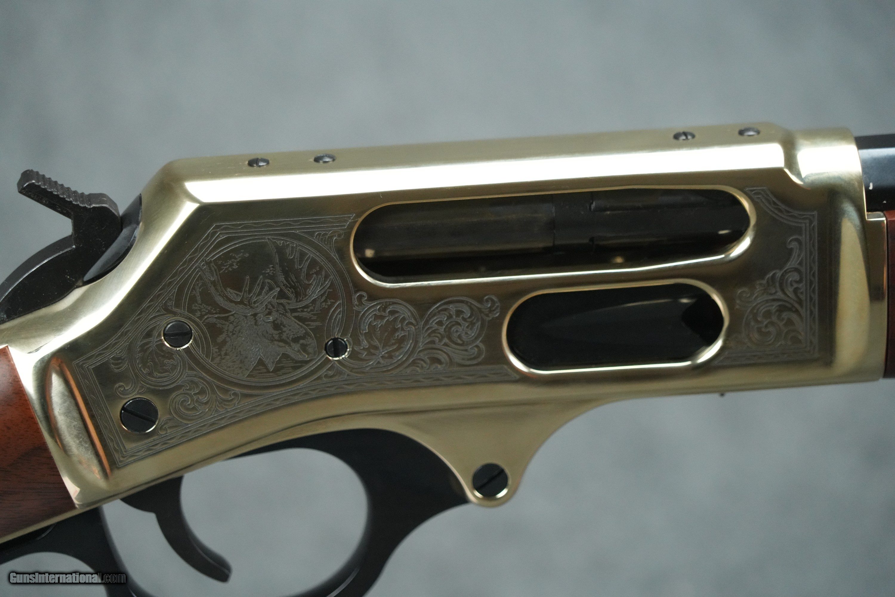 Description: Since the earliest days of American colonization, through the inevitable expansion of the Frontier driven westward by explorers, adventurers, and settlers, and on to modern times, the rifle has played a vital role in a part of life as old as mankind himself. Hunting to survive made it possible for Daniel Boone to become a legendary figure in blazing his Wilderness Road through the Cumberland Gap across the Appalachians into Kentucky in 1775, Lewis & Clark to travel 8,000 miles primarily on foot through unknown territories in 1804, for John Wesley Powell’s 1869 expedition mapping the Colorado River as the first non-natives to travel through the Grand Canyon, for the small homestead farmers of the great Oklahoma Land Rush of 1889 to establish and build on their claims, and for countless men to feed their families through the dark days of the Great Depression of the 1930s. Regardless of wealth or social status, hunting is an American tradition shared by all levels of society, and Henry Repeating Arms tips a hat to that tradition in these brass-framed, side-loading Wildlife editions. Big-bore hunters tracking bigger game can step up to four of the hard-hitting .45-70 bulldozers in the H010BGWL’s 22” octagon barrel. Where more steam might be needed, the .45-70 undeniably provides it, and the engraving, black-filled to bring out detail as it is on both brass Wildlife models, reflects that with American vine scroll and braided border again, surrounding on the right side a detailed depiction of a moose head in a circular setting, and on the left, a bear in an oval outline. And this model adds a larger lever loop for gloved use to the package. Travel with style on your next hunt, and take us with you. Barrel Length22" Barrel Type Octagon Blued Steel Rate of Twist 1:20 Overall Length 41.1" Receiver Finish Polished Hardened Brass Rear Sight Fully Adj. Semi-Buckhorn w/ Diamond Insert Front Sight Brass Bead Scopeability Drilled and Tapped Stock Material American Walnut Buttplate/Pad Brass Length of Pull 14" Safety Transfer Bar Best Uses Target/Hunting/Collector Embellishments/Extras Bear and Moose Receiver Engraving, Large Loop Lever, Side Loading Gate, Sling Swivel Studs SOLD Rifle Caliber: .45-70 Government Manufacturer: Henry Repeating Arms Model: Brass Wildlife Edition Barrel Length: 22" Barrel Condition: BRAND NEW |