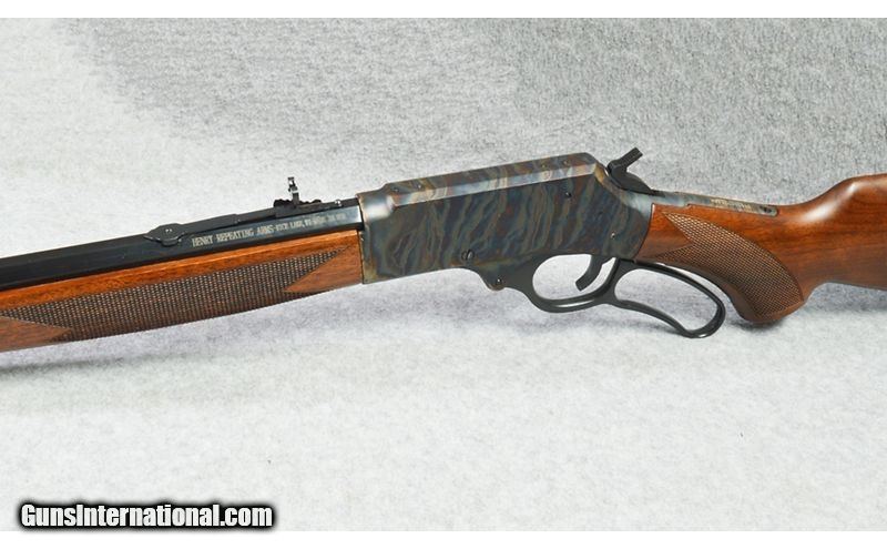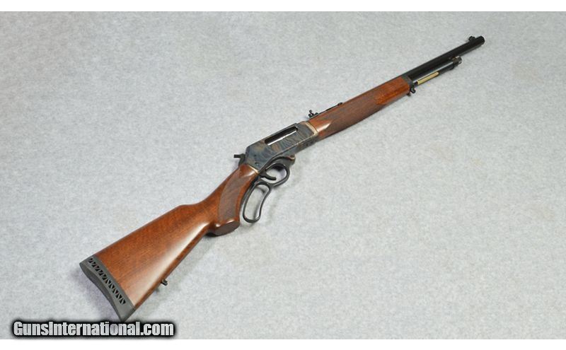 Description: For your consideration the Henry H010CC lever action repeating rifle, in caliber .45-70 GOVT. Henry's Steel Color Cased (Case Hardened) models feature one of the most appealing steel frame finishes. They are 100-percent American made with an octagonal barrel, adjustable buckhorn and bead sights, and checkered walnut furniture. Other features include a transfer bar safety, tube-loading magazine, sling swivel studs, a drilled and tapped frame, and a ventilated rubber recoil pad. Introduced to the world just 1 year after the invention of .45 Colt, .45-70 Gov't reigns supreme in the world of straight-walled cartridges to this day, reaching out past 150 yards accurately. Its name is derived from the bullet diameter (.45 in), the weight of the black powder used when it was created (70 grains), and the fact that it was designed and used by the U.S. ARMY in 1873. .45-70 Government SOLD Chambers: 45-70 GOVT Metal Condition: Excellent Wood Condition: Excellent Bore Condition: Excellent Barrels: 22 Fore End: Wood Butt Pad: Rubber Weight: 7 lbs Sights: Rifle Item Location: Centerville, OH |