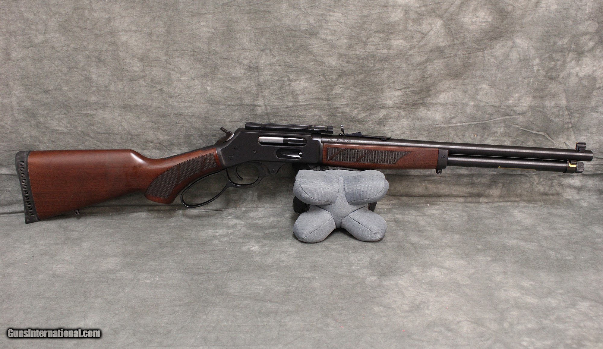 Description: The Henry H010G is a .45-70 caliber, lever-action rifle with a 18.43-inch blued steel barrel, an 4-round capacity, and a large loop lever. It features a fully adjustable semi-buckhorn rear sight, a brass bead front sight, a transfer bar safety, and comes with a large American walnut stock and a black ventilated rubber recoil pad. The rifle also includes swivel studs and a side-gate for loading. Firearm is in excellent condition and comes with a hard case. .45-70 Government Metal Condition: Excellent Wood Condition: Excellent Bore Condition: Bright & Shiny Barrels: 18.43 Stock Dimensions: 14 1/8" LOP Butt Pad: Black Ventilated Rubber Recoil Pad Weight: 7.08 lbs. Sights: "Front Brass Bead, Fully Adjustable Semi-Buckhorn with Diamond Insert Item Location: Auburn Hills, MI Price: $749.99 Contact Seller |
