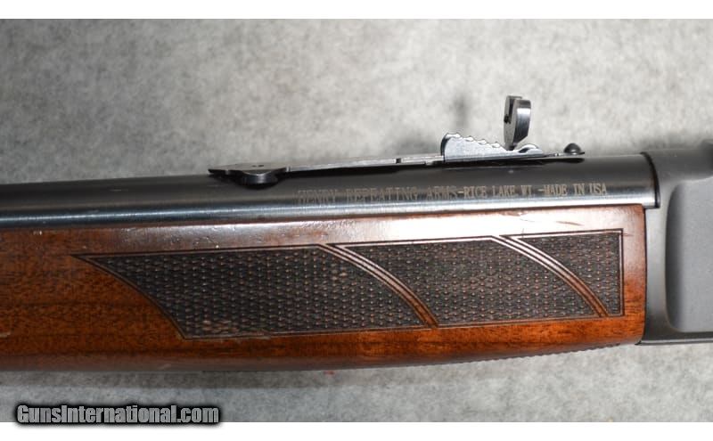 Description: The Henry Big Boy Side Gate Lever-Action Rifle features a beautiful, American walnut stock and fore end set. Constructed with steel and protected by a matte blued finish, this lever-action is simply gorgeous. This Henry lever-action gun is a dependable, brush-smashing gun. The beautiful steel receiver and round barrel really give it a nice touch. A fully-adjustable semi-buckhorn rear sight with diamond insert and brass bead front sight allow for simple and effective targeting. This rifle is in excellent condition. .45-70 Government SOLD Chambers: 45-70 Govt. Metal Condition: Excellent Wood Condition: Excellent Bore Condition: Bright and shiny Barrels: 18" barrel Triggers: Crisp Stock Dimensions: 13" stock Fore End: 7" fore end Butt Pad: Rubber butt pad Weight: lbs. Sights: Iron sights Item Location: Huntsville, AL |