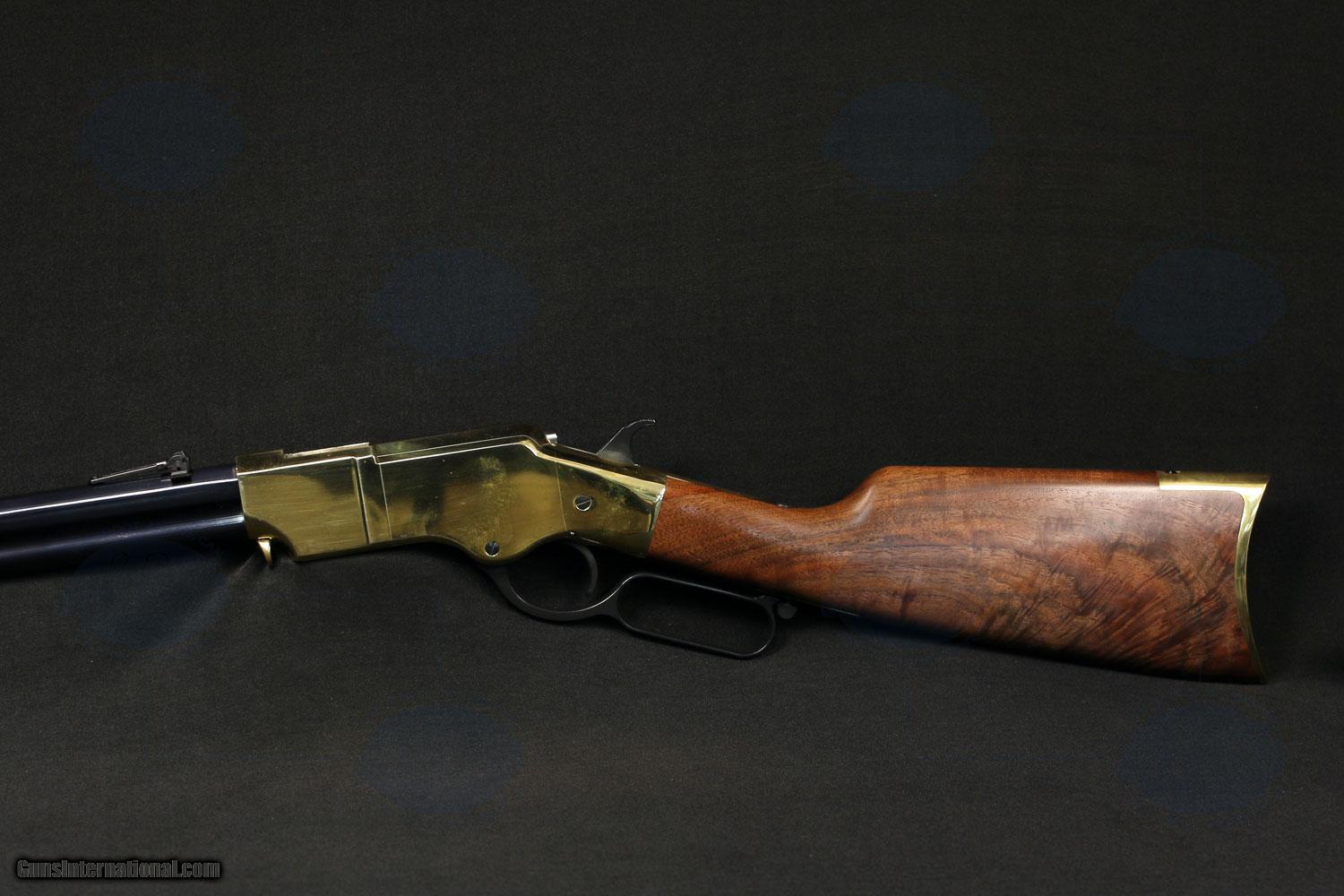 Description: Henry Benjamin Tyler Original Rifle 44-40 Winchester, 24 in, Blued Finish The original Henry rifle was a .44 caliber rimfire, lever-action, breech-loading rifle designed by Benjamin Tyler Henry in 1860. They will be releasing a tribute rifle that is almost exactly like the original 1860 Henry, chambered in .44-40 Winchester, due to be released 2013 14. It currently produces lever action rifles that are more akin to later Marlin types. All Henry Repeating Arms products and parts are manufactured in the U.S.A. SPECIFICATIONS: Make: Henry Model: Benjamin Tyler Original Model #: H011 Action: Lever Caliber: 44-40 Winchester Frame: Brass Barrel Length: 24" Capacity: 16 +1 Rounds Stock: Walnut FREE SHIPPING! No Credit Card Fees! SOLD |