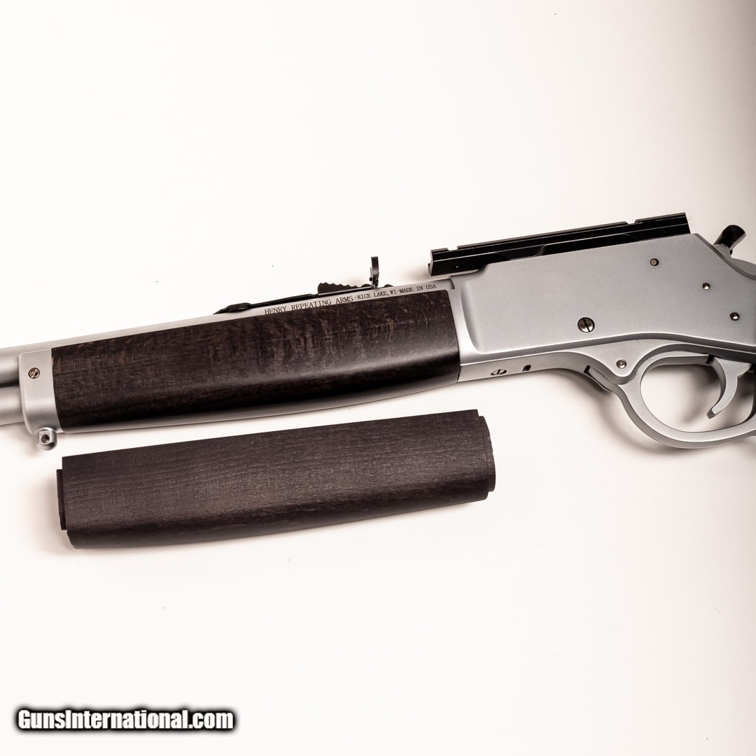 Description: Guns Listing ID: 855005 The Henry H012MAW Big Boy All-Weather Side-Gate is a lever-action rifle that‚‚s perfect for hunting, property defense, cowboy action shooting, and every other task you throw its way. Designed for heavy use and resistance to corrosion, its metal parts are hard chrome plated, and its hardwood furniture is treated with a durable industrial-grade coating. It‚‚s ready to weather any storm! This model features an extended hammer spur and includes the original box. Get the best bang for your buck when you get a Certified Used Firearm . When you see the Certified Used stamp on any of our firearms, you can be confident that you’re getting exactly what you want – a gun only in very good to excellent condition and held to the highest quality standard. All Certified Used Guns come with a ‘no questions asked’ return policy . PLUS, ALL CERTIFIED USED GUNS SHIP FRE SOLD Manufacturer: HENRY Model: H012AW Caliber Info: .44 MAGNUM Condition: Used - Certified Barrels: 19.7 BARREL Finish: STAINLESS AND BLACK |