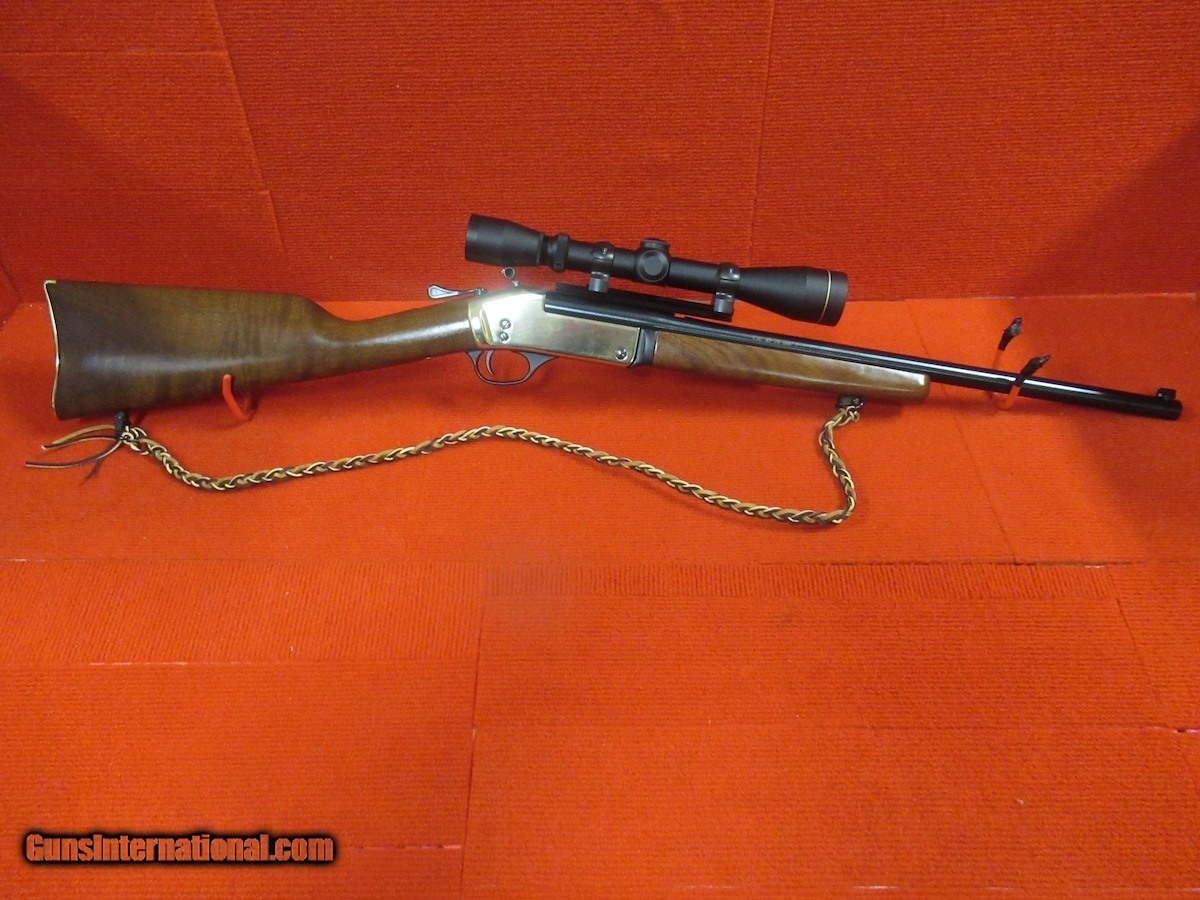 Description: Guns Listing ID: 458417 #181A Gun is in excellent condition. Gun has no blemishes, very clean. Gun comes with a Leupold VX-1 3-9x40 scope mounted to it. Gun also comes with a leather carrying strap. Very nice gun. *)) SOLD Manufacturer: HENRY Model: H015B-4570 Caliber Info: .45-70 GOVT Condition: Used - Non-Certified Barrels: 22 BARREL Finish: BRASS |