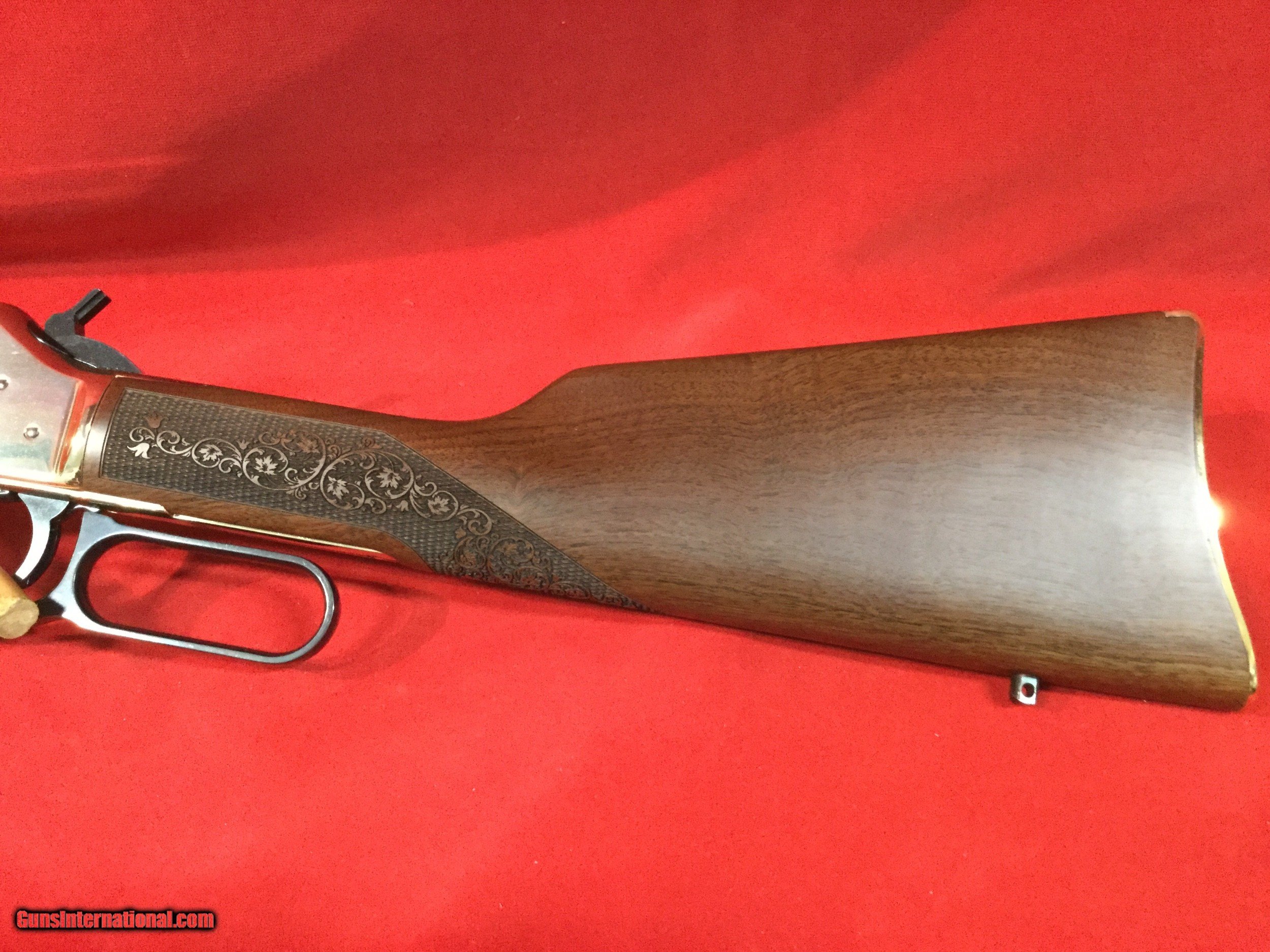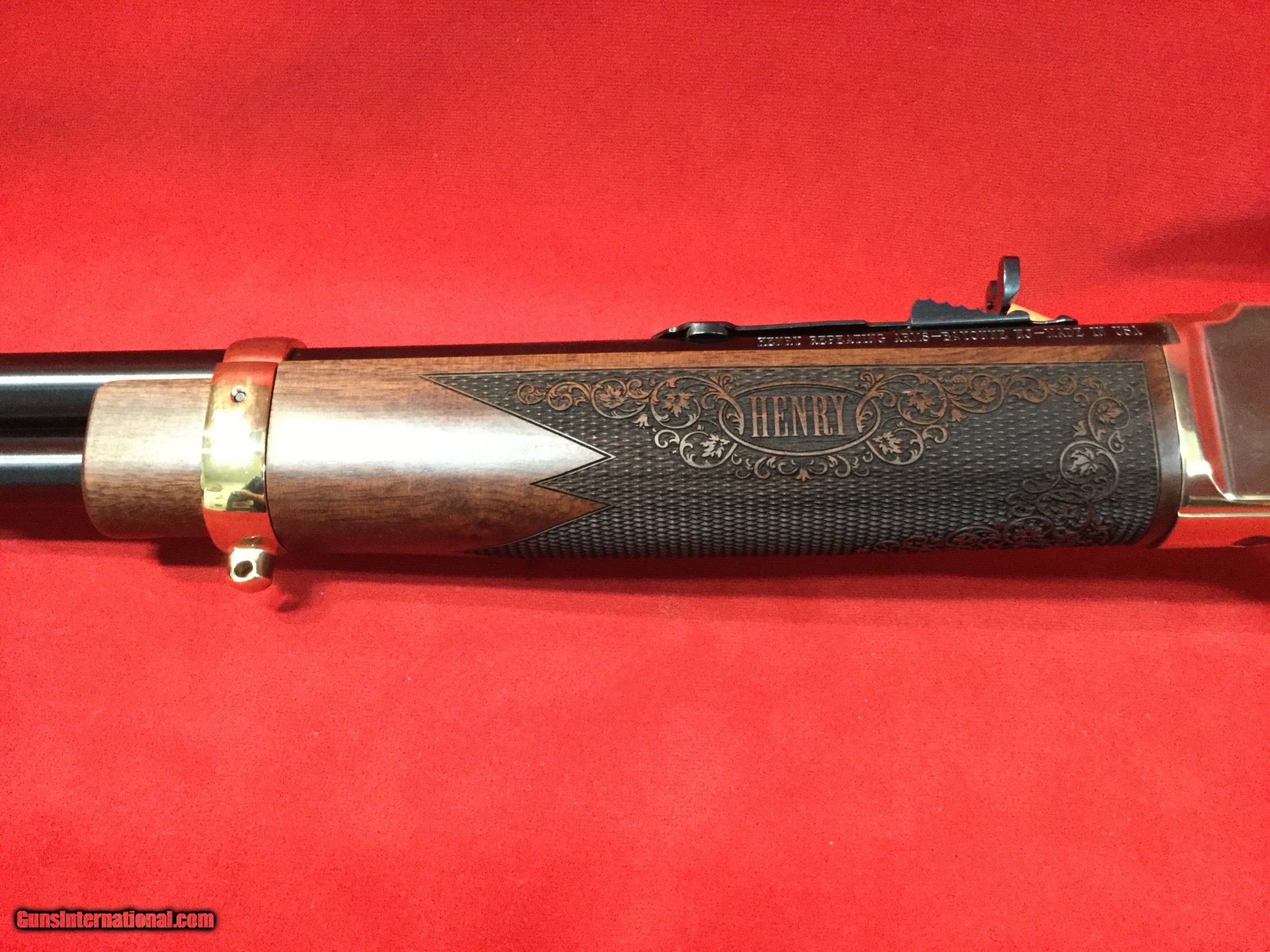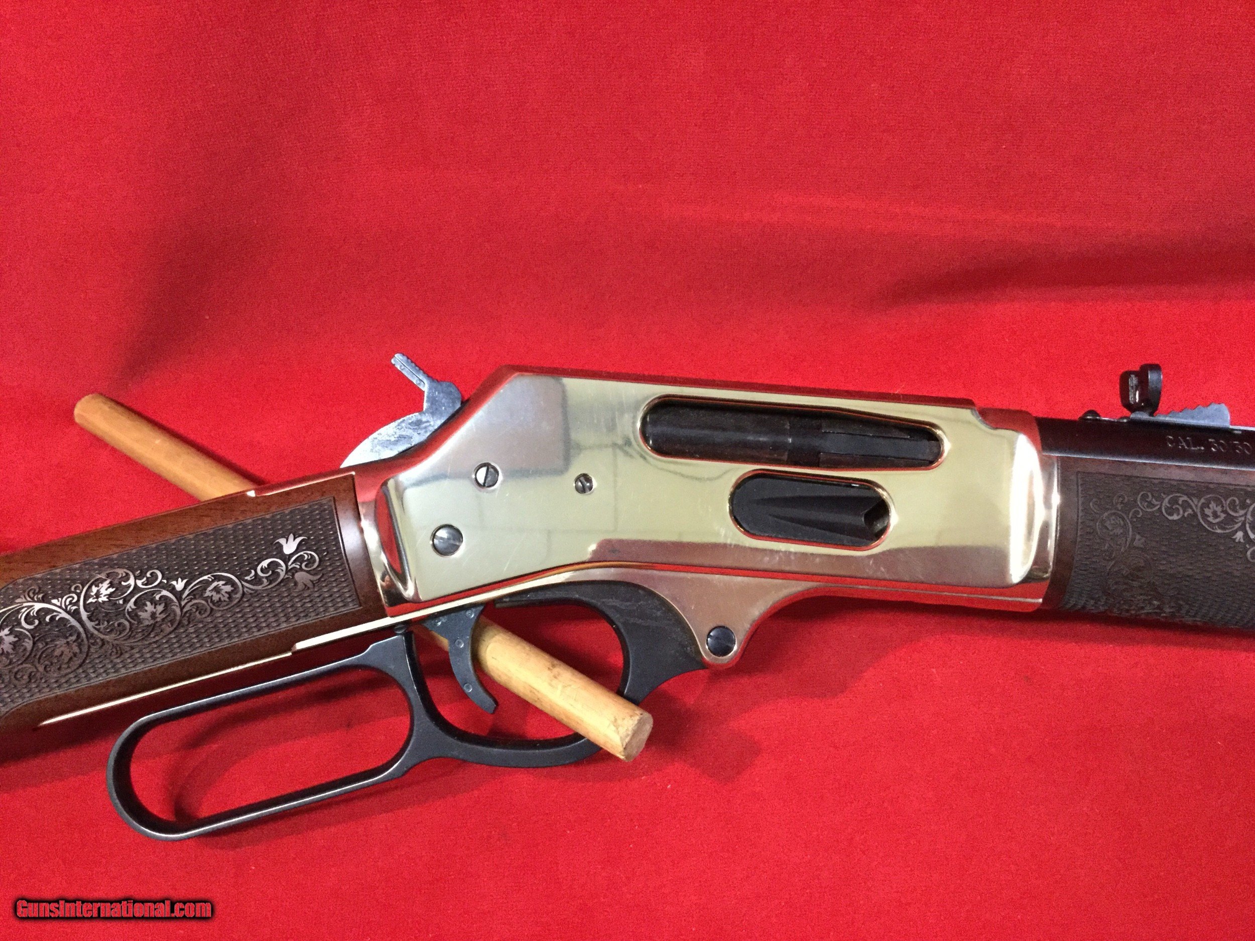 Description: ~~Used~~ Henry H024-3030 Side Gate 5+1 20" Polished Brass American Walnut Right. $749.99 plus $45.00 for shipping and insurance. Add 4% for credit card payments. "Henry's Side Gate Lever Action offers up the best of both worlds with a standard removable tube magazine for safe and easy unloading and a side loading gate to keep the magazine topped off. The hardened brass receiver is as reliable as it is handsome with the same yield and tensile strength as steel. The brass accents continue through the rifle with the buttplate and barrel band. Its American walnut furniture is set off by intricate, deep checkering that will ensure a firm purchase on the stocks. A semi-buckhorn rear and ivory bead front sight accompanies a 20" round blued steel barrel to deliver the accuracy. From whitetail hunting to days at the range, to standing as a favorite show-piece in the gun cabinet, the Side Gate Lever Action is a must-have for any lever action aficionado, and it solidifies Henry as the first name in lever action rifles." -Sports South SOLD |
