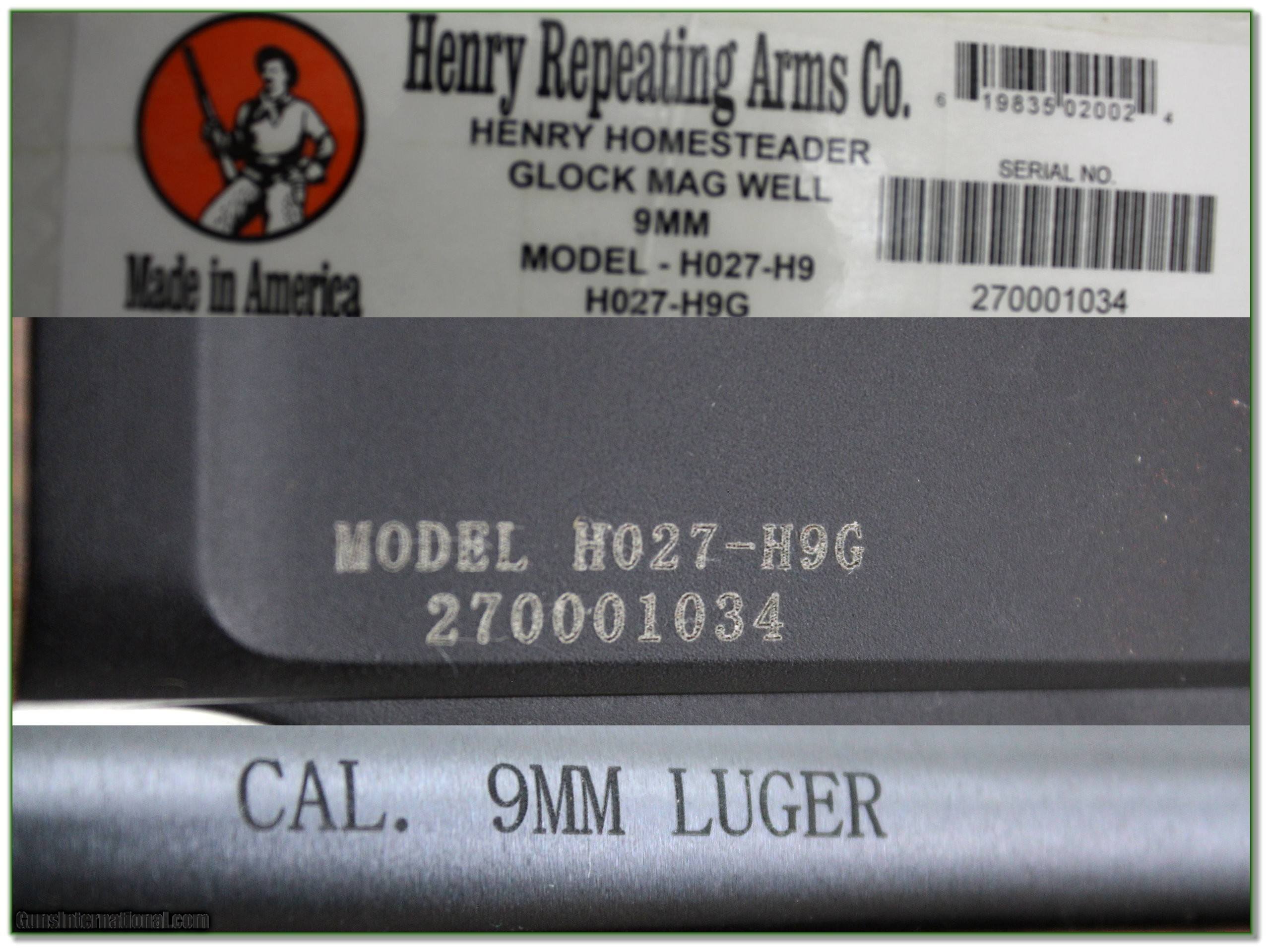 Henry Homesteader 9mm H027-H9 Homesteader NIB