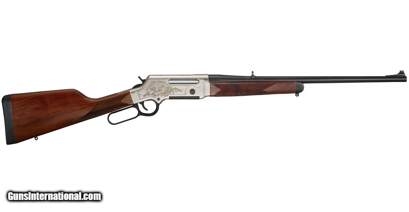 Description: This firearm is factory new in box, direct from the manufacturer or a distributor. All firearms are in stock at the time of this listing being posted, however our inventory can rapidly change. To confirm availability and place an order with us please visit our sight by searching ammoandarmsstore. Once you are there, input the Seller's Inventory # into the serach bar on the top left-hand side of the page. The first product displayed will be the one shown in this listing. Please click on the image of this item and if it is still available, an Add to Cart button will be displayed. If you wish to purchase this firearm please add the item to your cart, and then click on the Check Out box when the green message is displayed. You will then be able to place your entire order online as well as make payment. If the item is no longer in stock, there will be an option to enter your email address to be notified when it is available. Manufacturer: Henry Repeating Arms Co. Model: The Long Ranger Deluxe SKU: H014D-223 Caliber: .223 Rem/5.56 NATO Capacity: 5 Rounds Barrel Length: 20" Round Blued Steel Overall Length: 40.5" Receiver: Nickel Plated with 24K Gold Inlay Weight: 7 lbs Twist: 1:9" Stock: Straight Grip Checkered American Walnut Length of Pull: 14" Sights: Folding Fully Adjustable - Rear, Ramp w/ .062" Ivory Bead - Front Includes: Swivel Studs, Removable Magazine When we brought out our game-changing (and game-getting) Long Ranger model, it was a lever-action milestone for Henry Repeating Arms. But, the thing with milestones is that the first one only begins the journey, and in 2018 we’re adding more to that particular route. If you liked the original blued Long Rangers, either with or without sights, but your own personal style leans toward an upgrade in elegance and pride of ownership, you’ll want to take a close look at the new Long Ranger Deluxe, in the same three .223 Rem/.556 NATO, .243 Winchester, and .308 Winchester calibers. Crafted to the same specs and performance levels with round 20” barrels, checkered American walnut furniture, straight-wrist stocks, 7lb weights, fully adjustable folding rear sight and .062” ramped ivory bead front, drilled & tapped receivers for scope use, comfortable non-slip black solid rubber recoil pad, sling swivels, detachable steel magazine, and automatic transfer-bar safety, the Deluxe Long Rangers center around an eye-catching lightweight alloy receiver plated with highly polished nickel under beautifully executed scroll engraving on both side flats and lightly accented with 24K gold inlay. For truck, saddle, or tree stand, take your next hunt up a notch, and never forget that there’s a true Henry workhorse inside these show ponies. KNOW YOUR LOCAL AND STATE LAWS!! ORDERS WILL ONLY BE ACCEPTED FROM US RESIDENTS OF THE LOWER 48 STATES, ALASKA AND HAWAII. OUR FFL CLASS DOES NOT ALLOW FOR THE EXPORT OF FIREARMS, THEREFORE WE CANNOT SHIP OUT OF THE US. IF YOU ARE INTERESTED IN PURCHASING THIS ITEM, PLEASE COMPLETE YOUR ORDER BY REFERRING TO THE "SELLER'S INFORMATION" ABOVE. SOLD Rifle Caliber: .223 Remington |